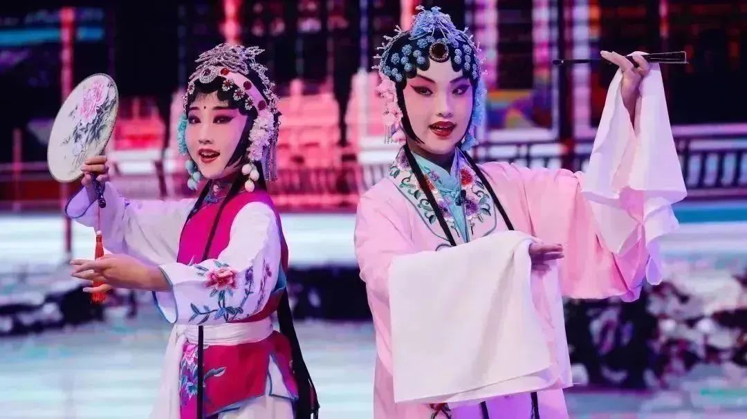 “传承”篇章,师傅带徒弟口传心授,从传统京剧剧目《三岔口》,到昆曲经典《游园惊梦》;从评剧《花为媒》,到黄梅戏《女驸马》等展示了中国戏曲多剧种的舞台魅力,透露出了学生们从骨子里对戏曲艺术的无比热爱。