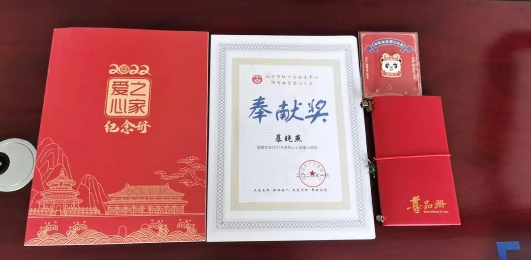 暴晓燕先后获得2019年、2020年顺义区红十字会“人道公益”奖,2021年中国红十字会“会员之星”荣誉称号及2022年北京市红十字血液中心“稀有血型爱心之家奉献奖”。暴晓燕表示:“作为一名党员志愿者,我将继续保持积极向上的生活态度,带动更多爱心人士加入公益献血队伍,携手奉献爱心。”