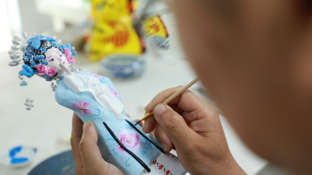 玉田泥塑作品《锁麟囊》造型生动,色彩典雅,曾亮相2023年法国巴黎国际博览会。