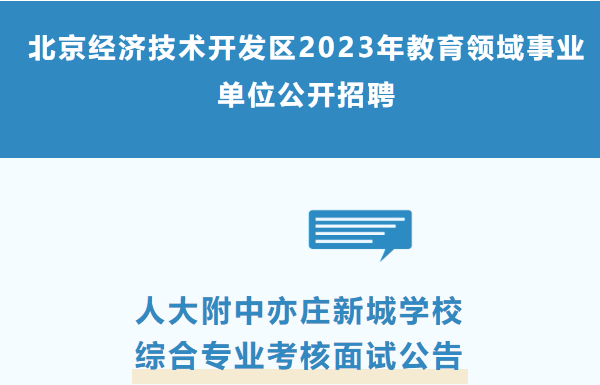 根据北京经济技术开发区2023年教育领域事业单位公开招聘工作进展,现就人大附中亦庄新城学校面试有关事宜公告如下: