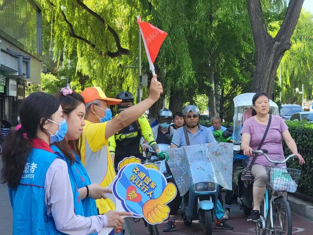 6月9日早8点,正值上班高峰期时段,在金宝街与朝阳门南小街交通路口,来自首都文明单位建国门社区卫生服务中心的两名志愿者准时到岗,穿着志愿者马甲,手持文明引导牌,引导行人集中过马路,对行人零散过马路、过马路不走斑马线、闯红灯、越线停车等不文明交通行为进行劝阻、纠正。