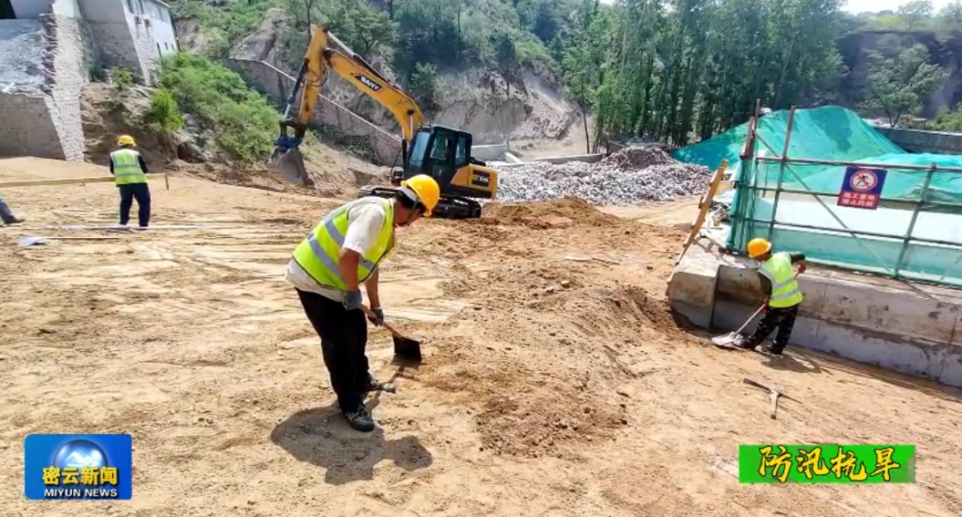 据北京通成达水务建设有限公司现场负责人刘永介绍,目前正在对水库大坝下游削坡,工人配合基建测量,我们准确地把这找平,为了护砌打下更好的基础,为了库容容量更大,做得更安全。