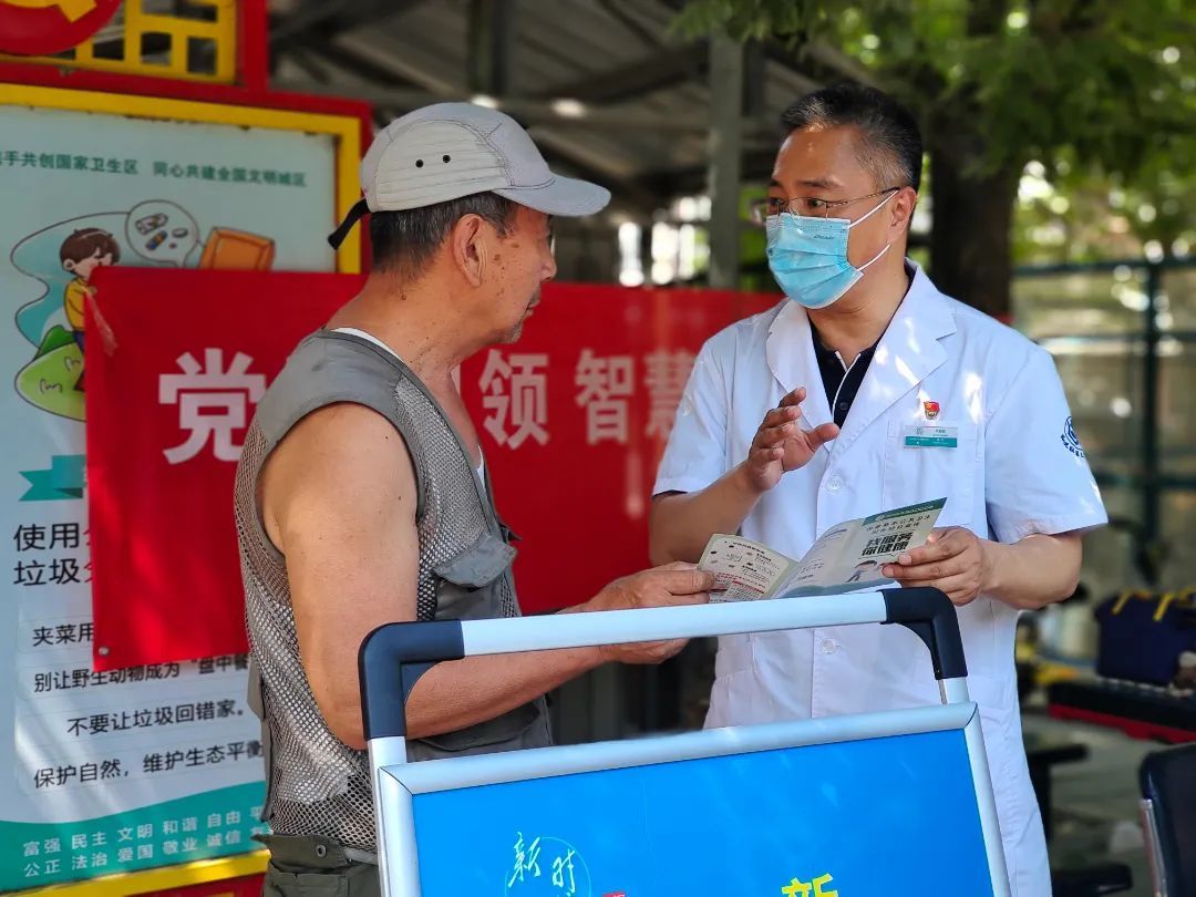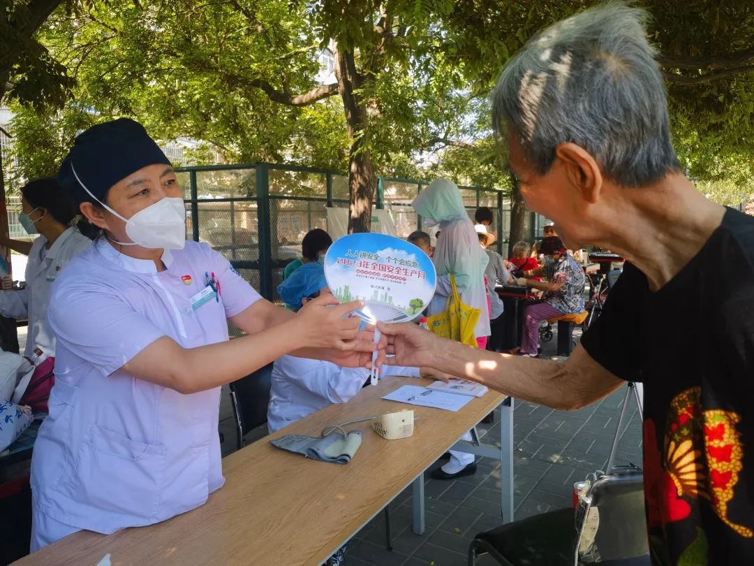 活动现场,居民热情洋溢,很多居民对医护人员也很熟悉,虽然天气炎热,但义诊现场积极健康的氛围让大家感觉如沐春风很是惬意。同时中心党支部书记、主任齐有胜带领党小组成员为辖区居民现场解读了国家基本公共卫生的服务项目,2023年6月是全国安全生产月,党小组成员还重点对“人人讲安全 个个会应急”等安全方面知识对居民进行了宣传。