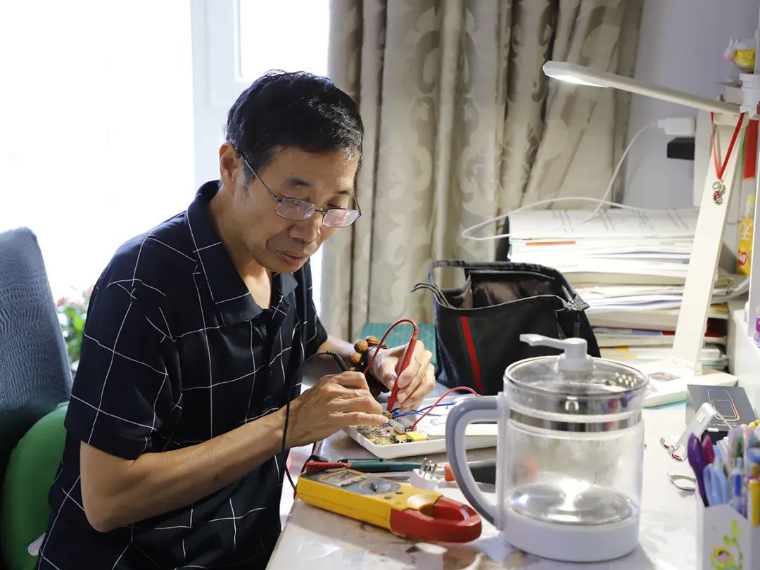 “现在居民家里东西坏了,大多选择换个新的,但其实很多都是小问题,修修就能继续用。”杜文明边检查邻居梁克明送来的烧水壶边对记者说。拆开底座仔细检查、用万能表测量电流,经过一番查看,杜文明判断烧水壶的电阻损坏。“换一个电阻就能用,不用破费买新的。”他笑着说。几分钟,他便将烧水壶修好,接上水,不一会就烧开了。