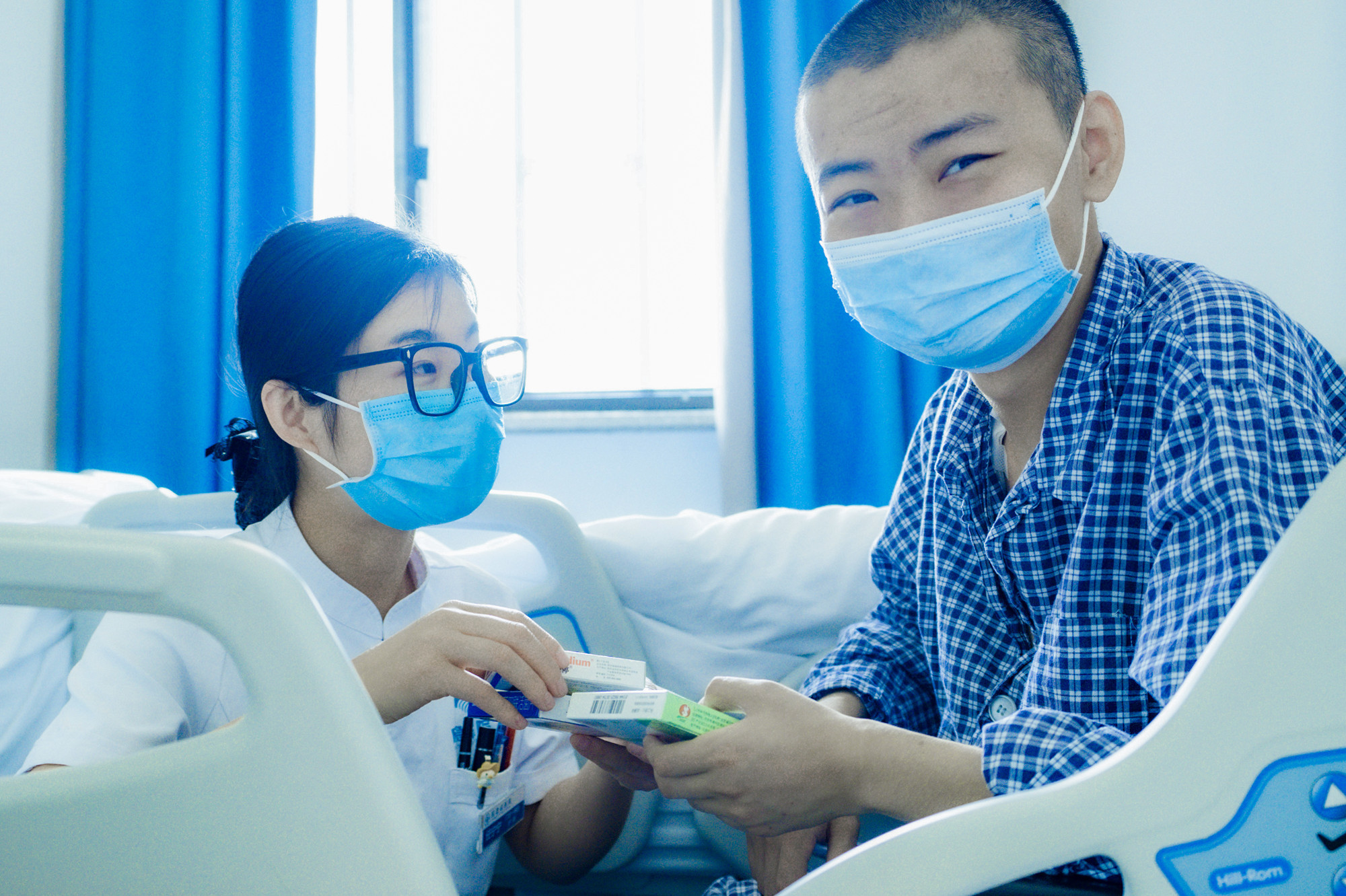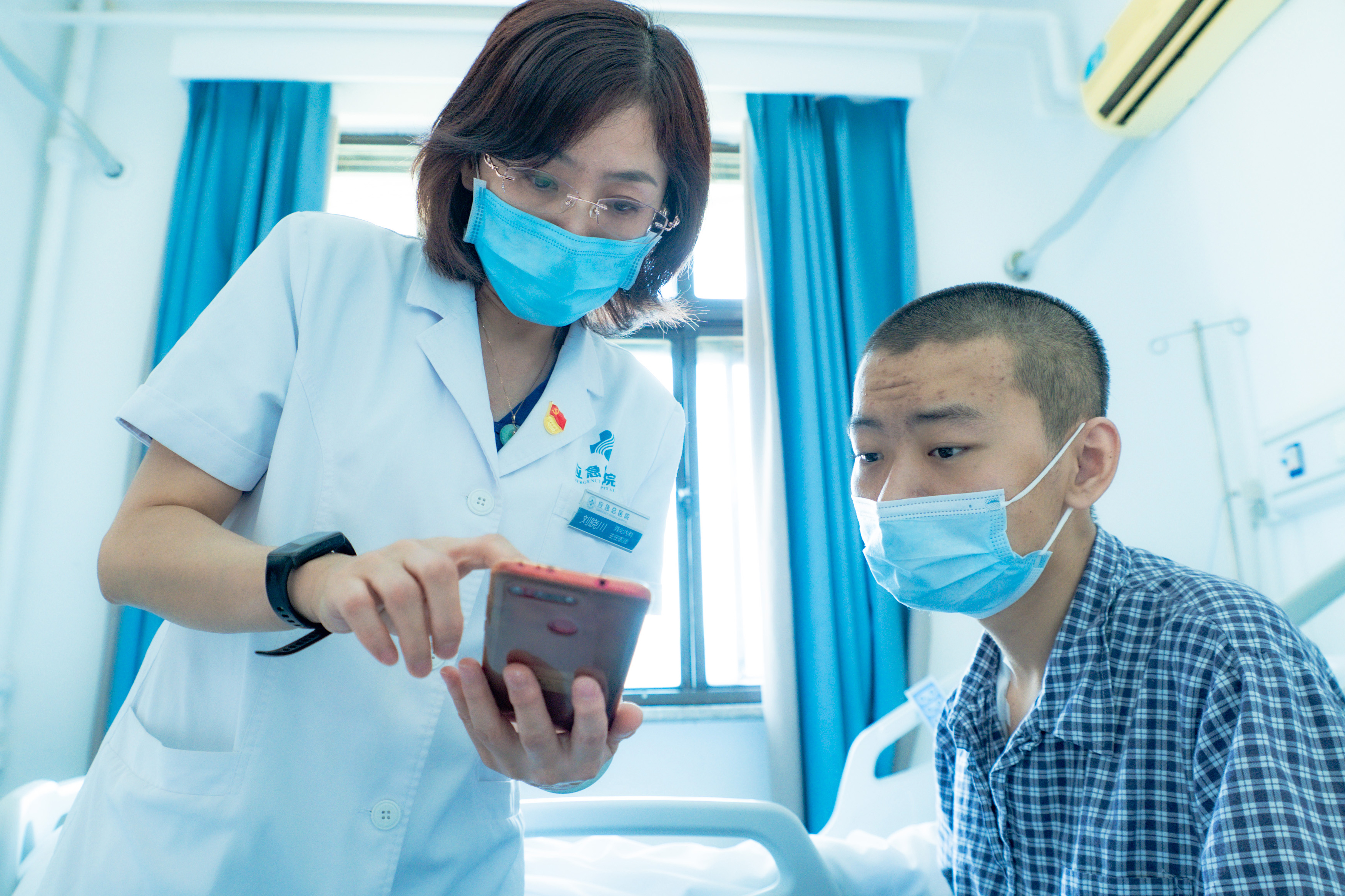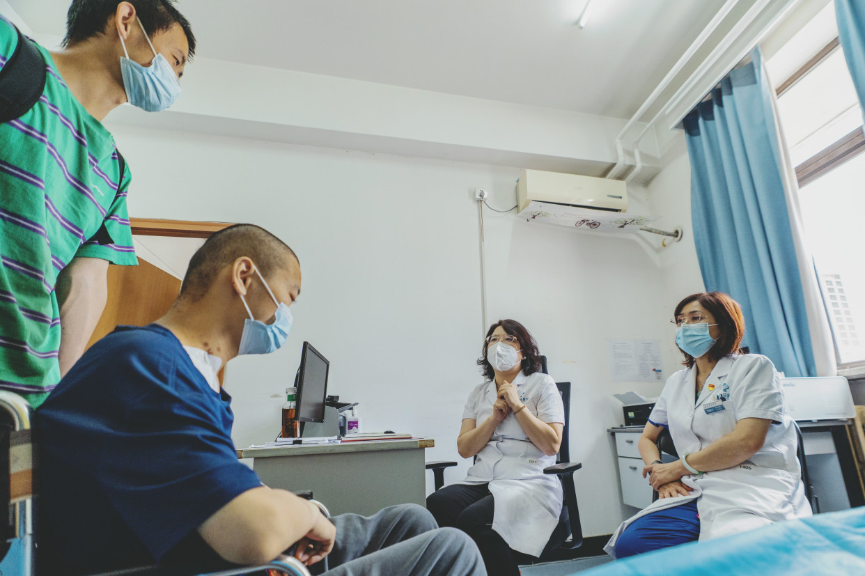 6月14日上午,一个高高瘦瘦的男孩推着坐在轮椅上的哥哥来到位于朝阳区西坝河南里29号的应急总医院住院,兄弟俩一来到门诊四层的消化内科病房,医护人员立即围拢过来嘘寒问暖,安顿下来后,护士为花悦抽血进行相关检查。