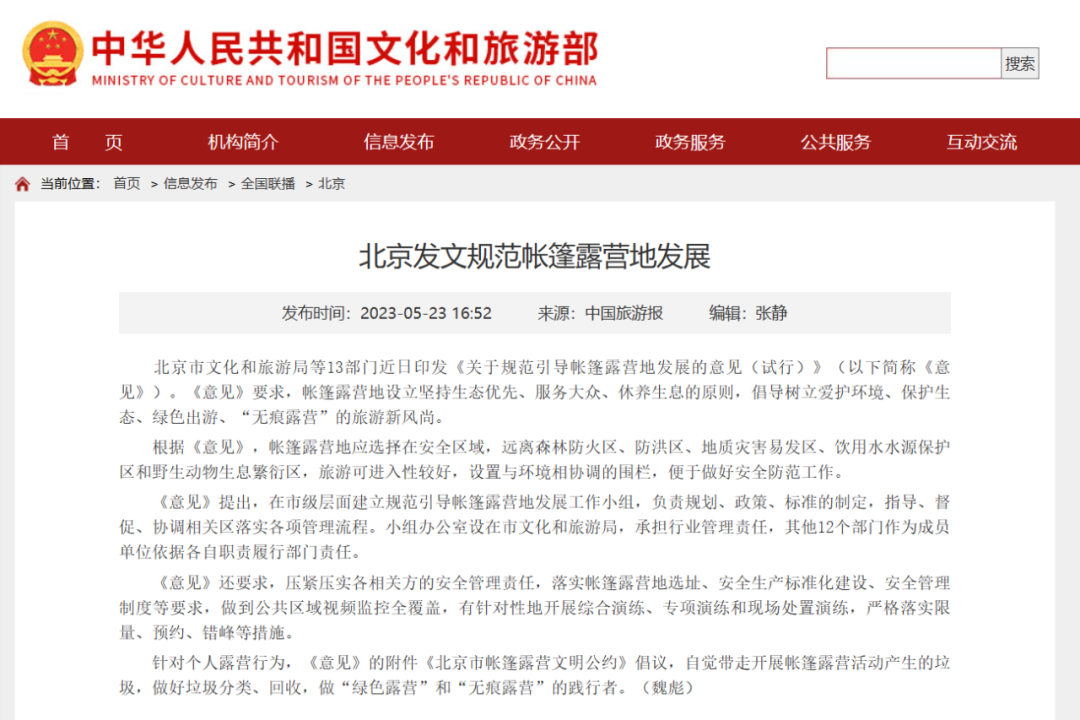 今天我们文艺频道中心报道小队将带大家直击2023年京津冀晋房车露营发展交流会,并邀请北京市文化和旅游局资源开发处处长张靖为大家解读2023年5月19日北京市文化和旅游局等十三部门关于印发《关于规范引导帐篷露营地发展的意见(试行)》。