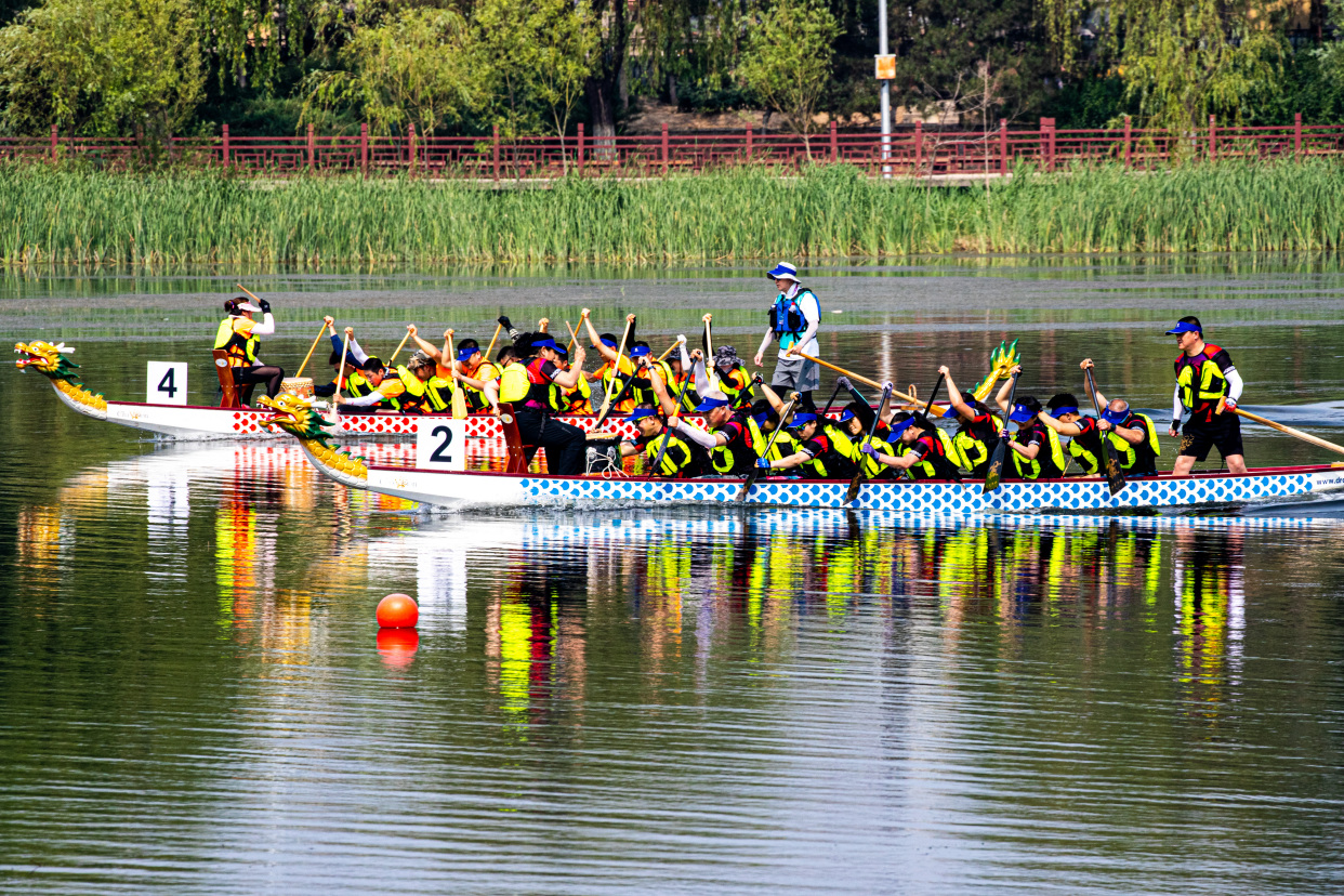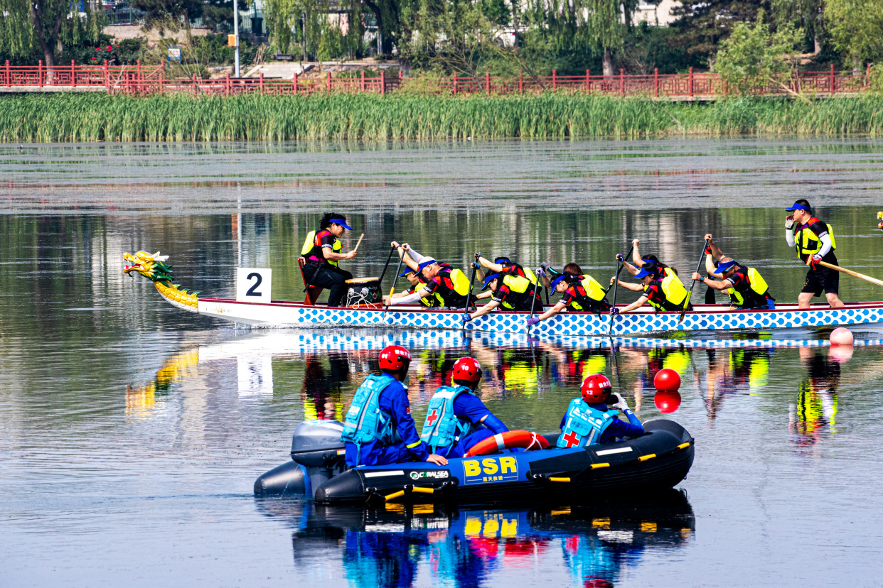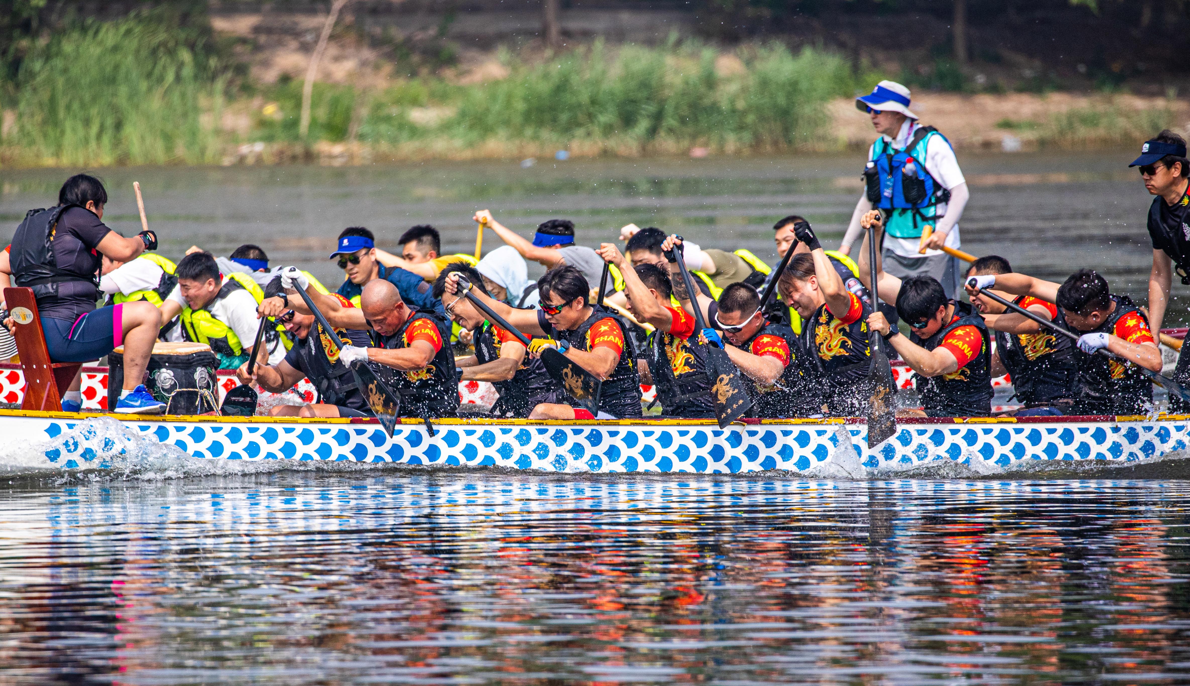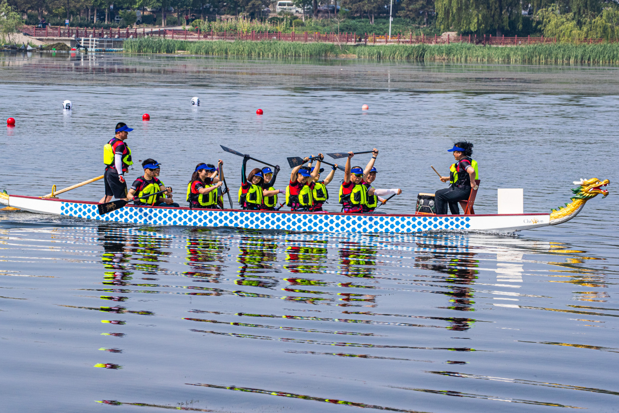 6月18日,由丰台区体育局、丰台区水务局联合主办的第二届丰台区“卢沟晓月”龙舟大赛在丰台区全民健身水上运动基地晓月湖公园举行,全市18支代表队,超200名桨手划开碧波,勇争头筹。
