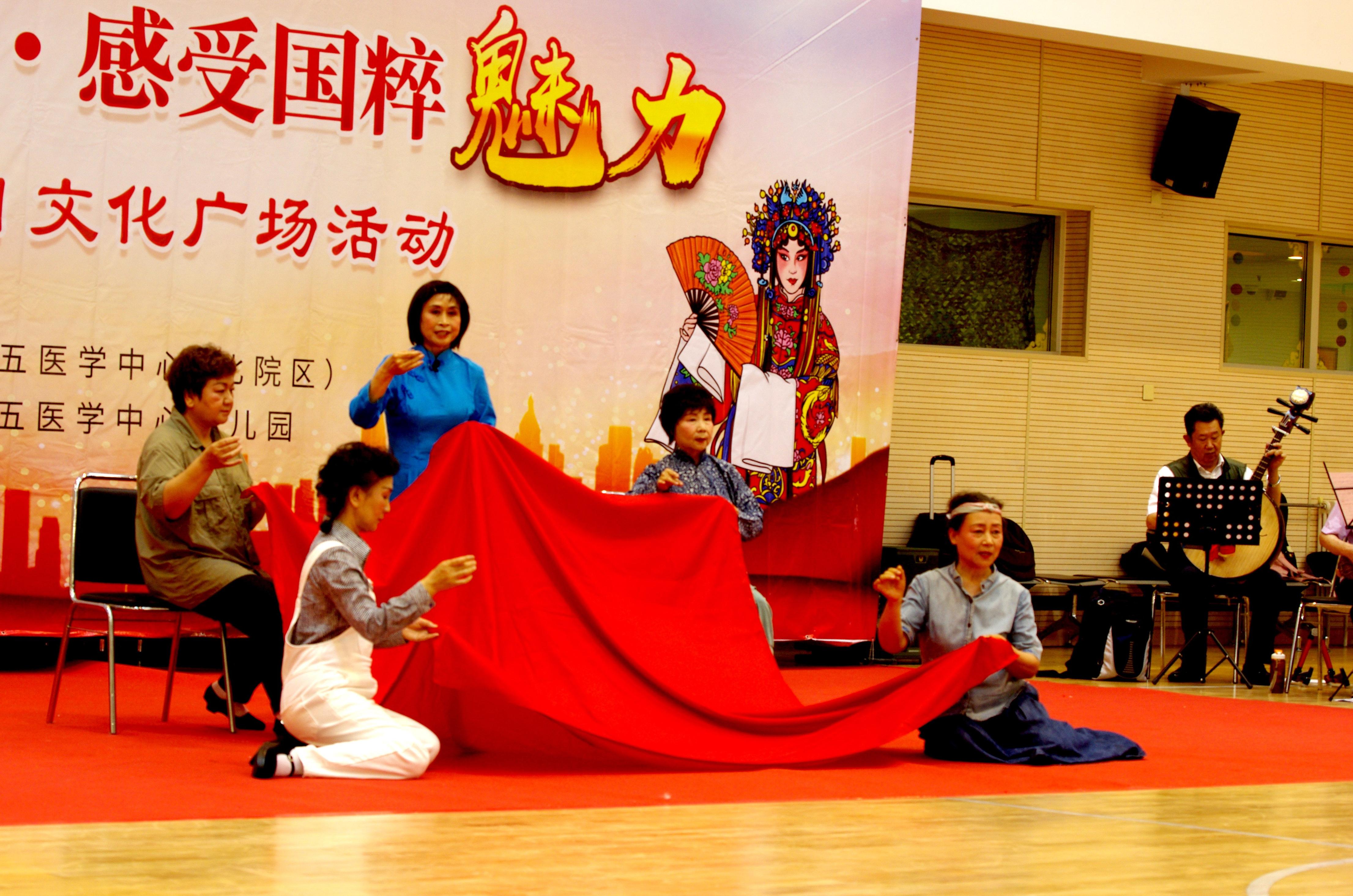 演出邀请了解放军总医院第五医学中心幼儿园的小朋友们,他们用气势磅礴的锣鼓表演《旗鼓飞扬》拉开序幕,《大探二》《智斗》《军民鱼水情》《一番话》《双阳公主》《绣红旗》等经典曲目将演出不断推向高潮。精彩纷呈的活动内容,表演者们精湛的唱功,配上华美的服装道具、悦耳动听的乐器伴奏,博得了现场居民阵阵喝彩声。