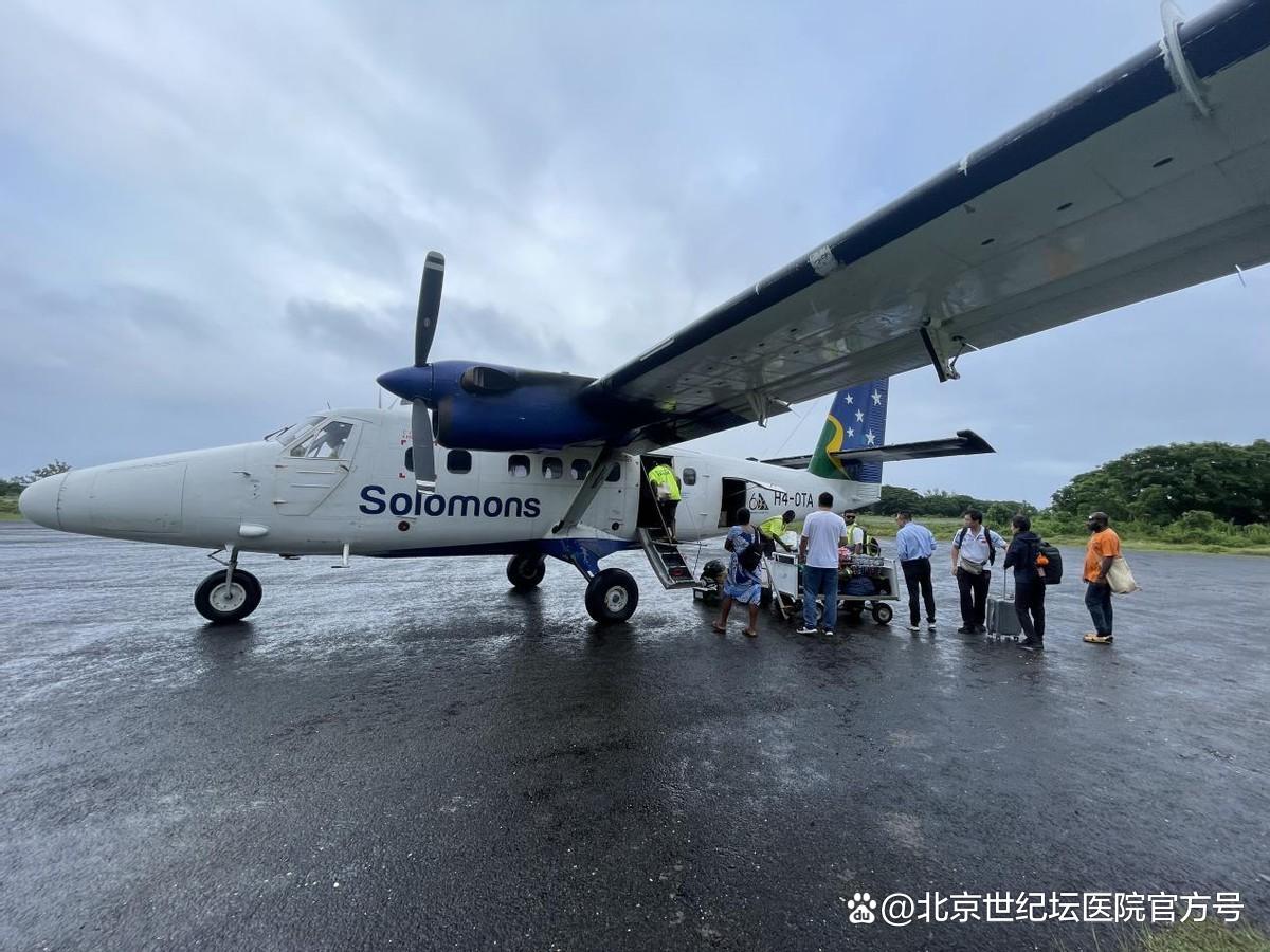为了顺利完成巡岛义诊工作,根据以往经验,陈达副队长在机场办理托运手续时,特意叮嘱机场工作人员,务必把医疗队携带的药品物资随行托运。当大家走出舱门,立刻与地勤人员共同清点托运物资,万幸四箱物资全部抵达,但是却有数名队员的生活行李未能随行,最早也要在两天以后才能随下一航班抵达这里,大家已经习惯了这里的“惯例”,未来的两天需要忍受汗透几身不能更换衣服的“痛苦”。中土南太公司Pentecost岛项目部是接机的唯一机构,一行数人为雨中到达的医疗队员送上第一份温暖。
