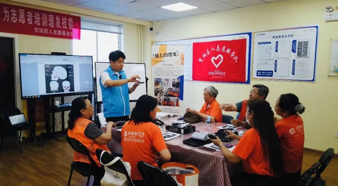 近日,在东华门街道团工委和民生保障办公室的支持下,梵珀匠人志愿服务队来到街道甘雨社区养老驿站,首次开展理发技能专题培训。来自养老驿站的6位志愿者参加了此次培训。