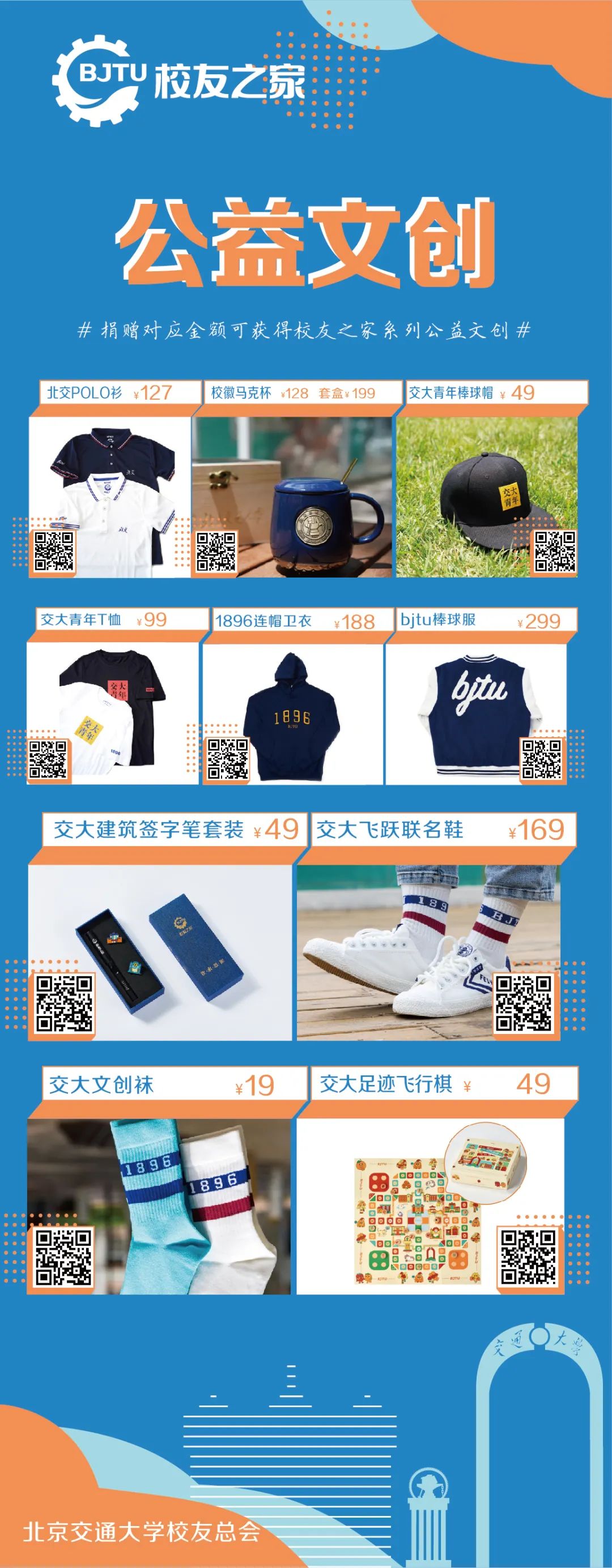学校校友总会将设置文创公益捐赠摊位。欢迎毕业生们于8:00-18:00在西操场东南门篮球场内、天佑会堂门前及校友共享空间,通过捐赠的方式支持学校公益基金项目,获得校友之家系列文创产品。