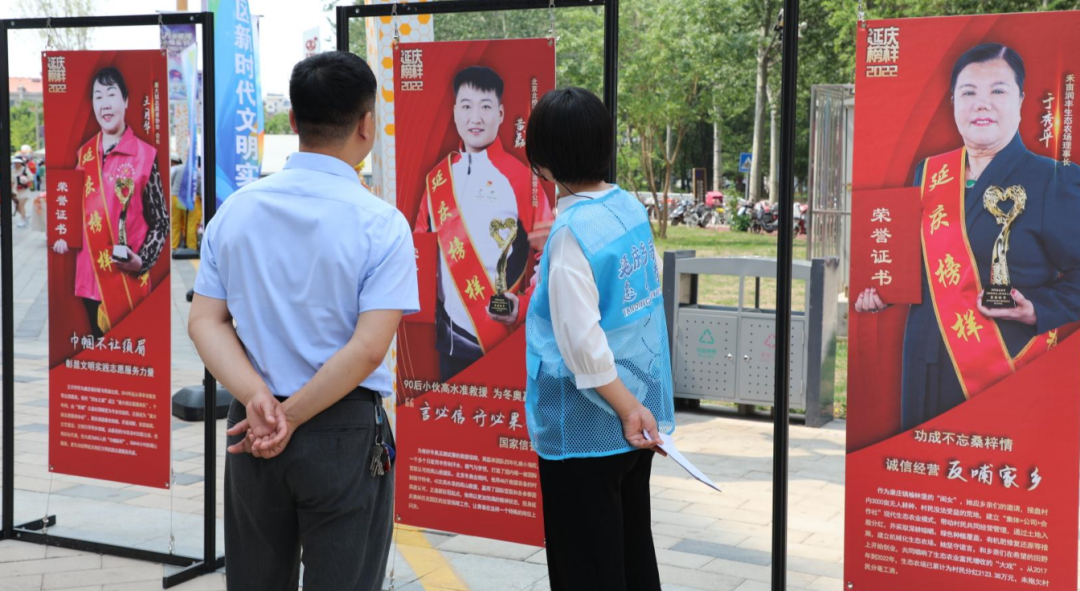 特别值得一提的是,当天,2022延庆榜样事迹展也走进了香水园街道新时代文明实践大集。讲解员现场为市民群众讲解榜样故事,弘扬榜样精神。不仅丰富了新时代文明实践大集的服务形式,也更好营造了榜样事迹人人可学可做的浓厚氛围。