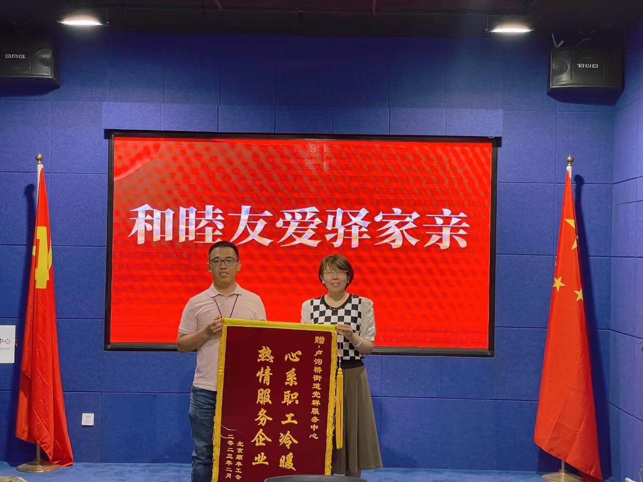 端午节前夕,北京顺丰速运有限公司丰体片区负责人郝志军将一面书有“心系职工冷暖、热情服务企业”的锦旗送至卢沟桥街道党群服务中心,对中心长期以来的热情服务与关怀备至表示感谢,同时鼓励和鞭策辖区快递小哥以更强的责任心和使命感积极参与辖区社会治理,更好地履行社会责任。