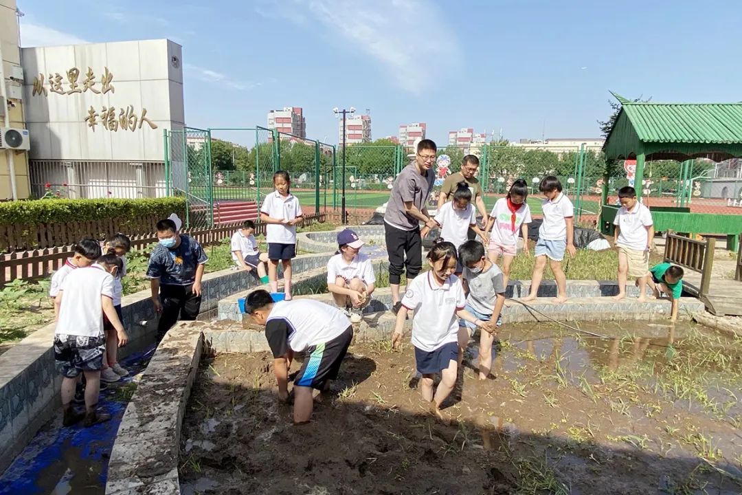 在西辛小学教育集团,学校根据节气时令开展“劳动赋能乐享成长”劳动教育系列活动,从惊蛰开始整地除草,到春分班级育苗,再到谷雨种瓜点豆,以及在芒种时节体验水稻和菌菇种植。