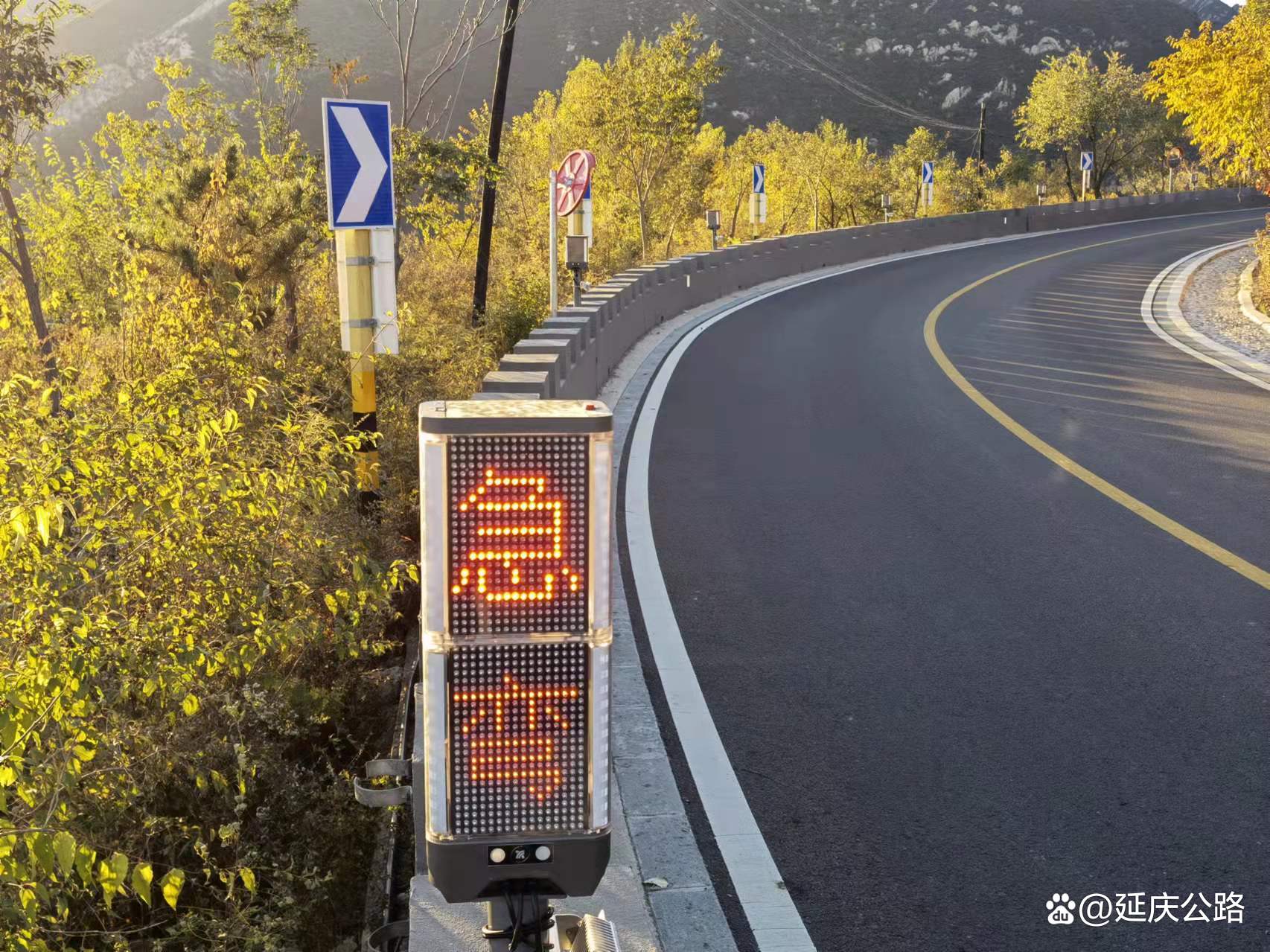 它全长17.7公里,等级为山区三级、四级公路,全线共设置桥梁5座。作为北京市首次在沥青混凝土中添加新型相变材料的公路,延庆公路分局通过设置多种智慧设施如弯道盲区预警系统、冰雪预警系统和边坡预警系统,用科技手段打造出一条“缓积雪、抑凝冰”的绿色冬奥线路,使其拥有智慧化功能和路网综合感知能力。
