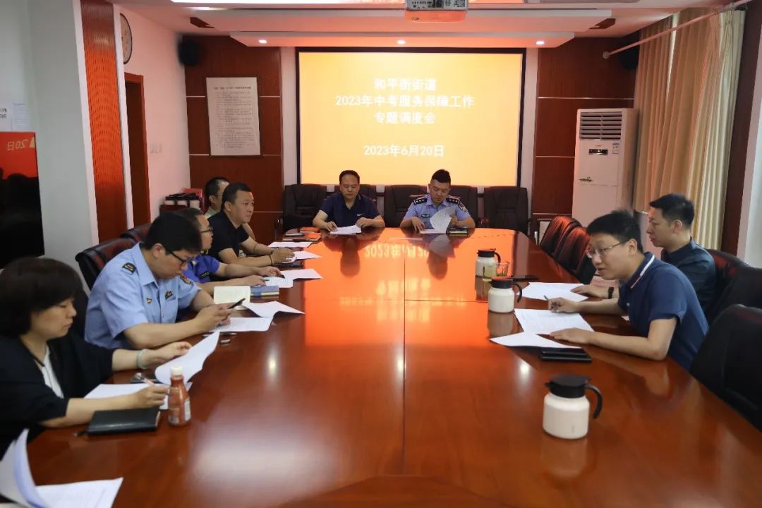 为做好2023年中考考点安排协调相关工作,给广大考生营造整洁优美、安静有序的学习和备考环境,6月20日,和平街街道召开2023年中考服务保障工作专题调度会,办事处主任赵瑞博、副主任王卫昕、街道相关部门负责人、相关社区书记及和平街派出所参加会议。
