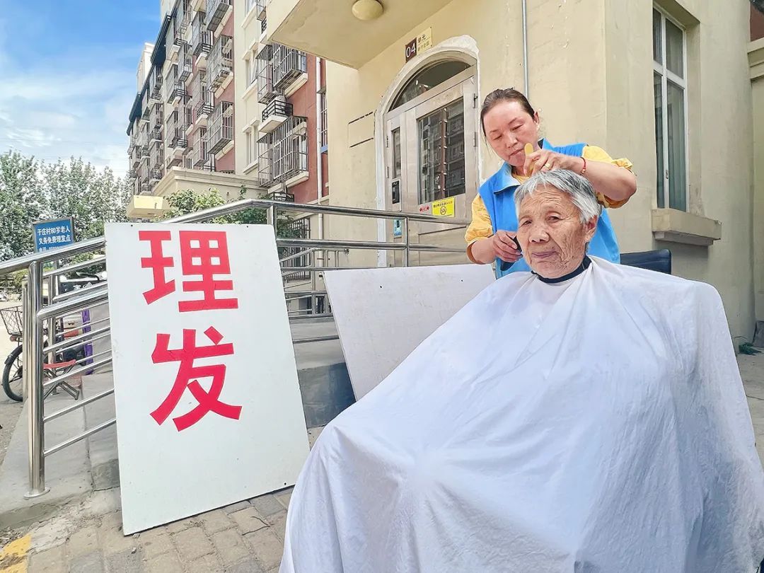 石春秀正在为老人理发。