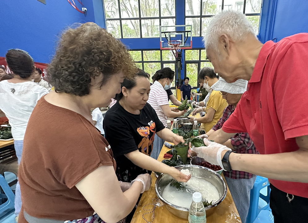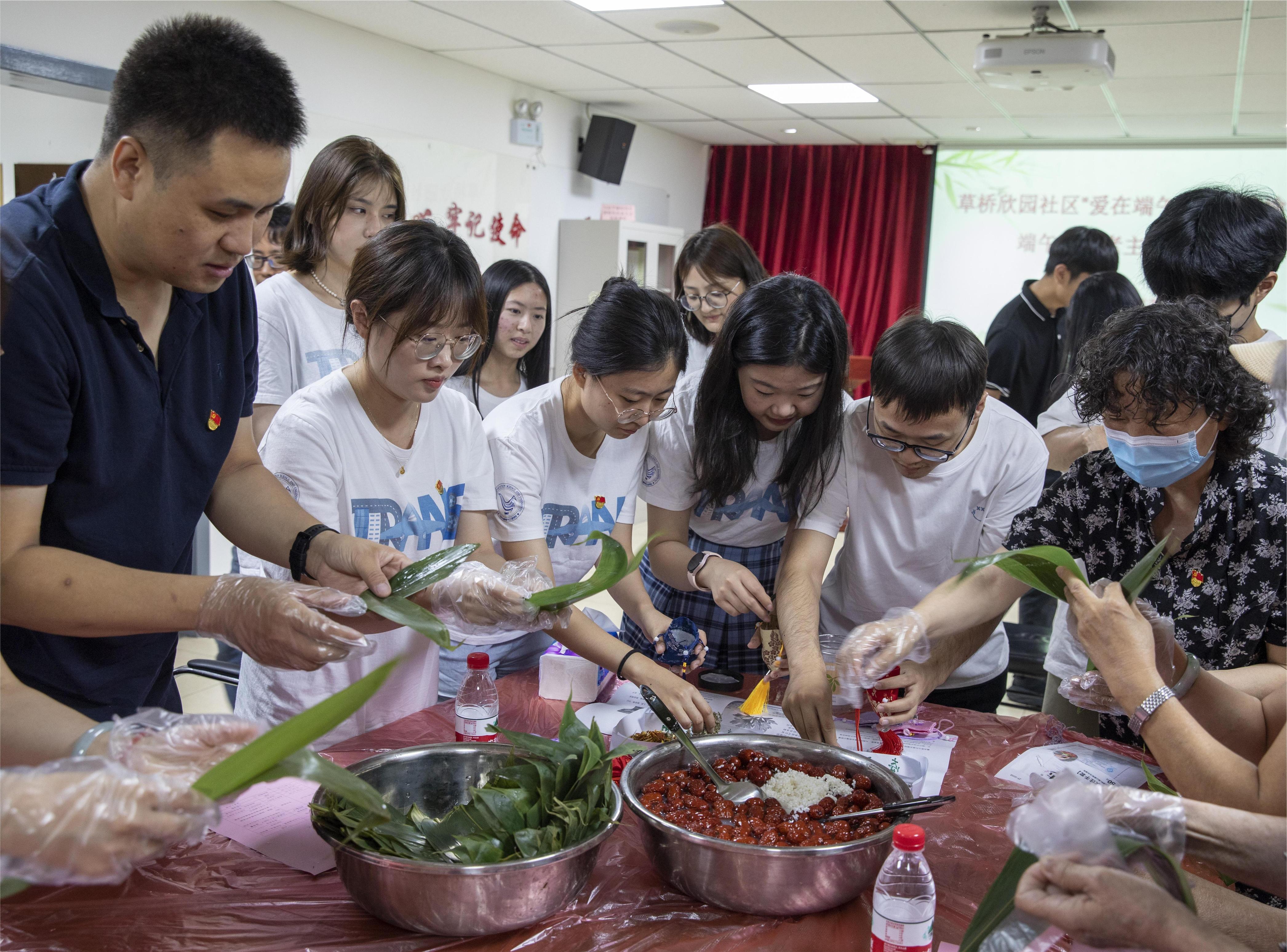 做漏斗、填糯米、加馅料、包裹成粽,草桥社区开展的“粽叶飘香 喜迎端午”包粽子活动吸引了不少社区居民积极参与。活动现场弥漫着棕叶香,气氛融融,欢声笑语不断,一片片清香的粽叶、一粒粒晶莹的糯米,在一双双巧手下转眼就变成了一个个诱人的粽子,居民们纷纷合影留念,邻里关系更加和睦融洽。