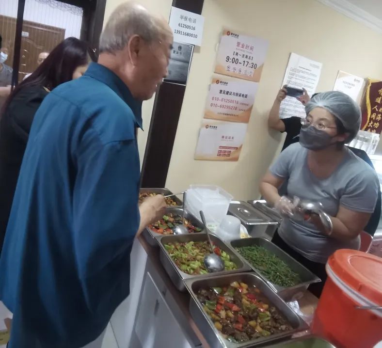 负责盛菜的工作人员一边给爷爷奶奶们盛菜,一边热情地介绍着。老人们纷纷竖起大拇指,夸赞养老助餐服务的用心。