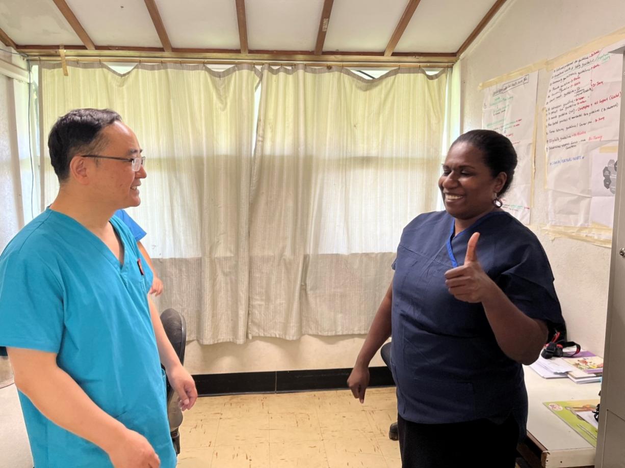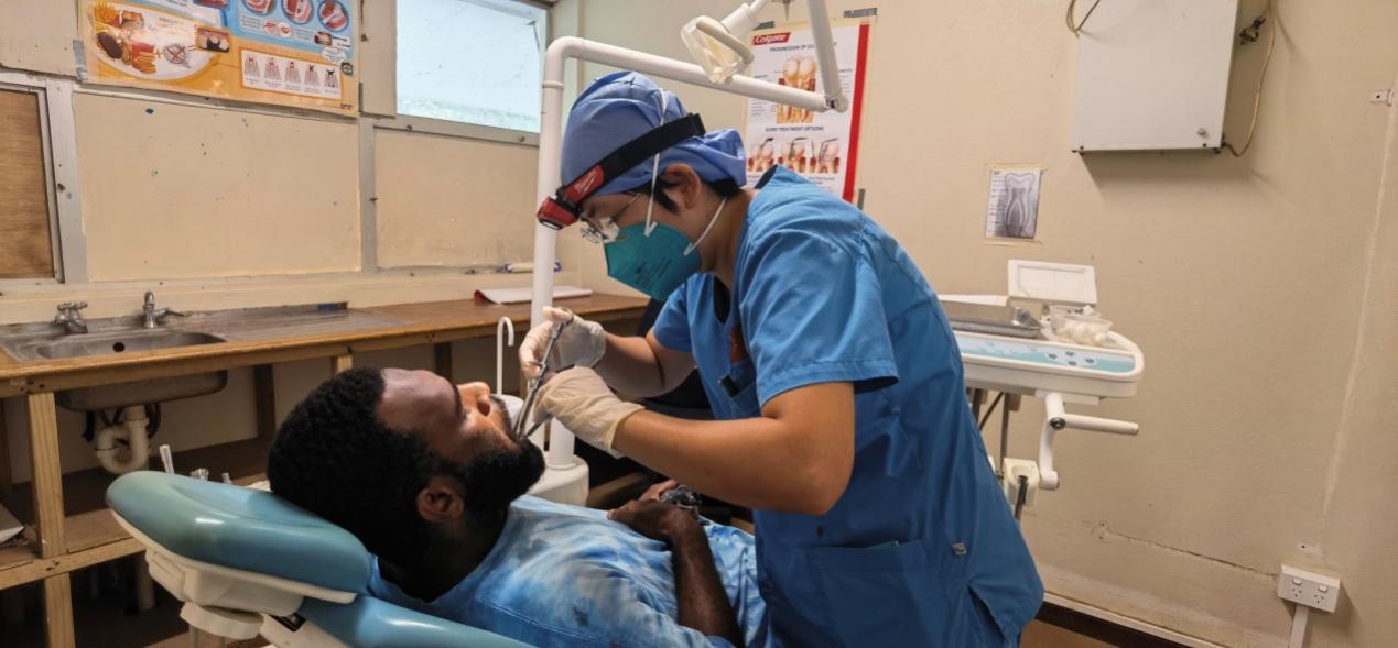 瓦努阿图有一些中资机构的工作人员,他们长时间不能回国,当地医疗水平低下,语言沟通又有障碍,这些同胞的看病就医是个大问题。医疗队抵达后,中资机构工作人员得到了便捷、远高于当地水平的医疗服务。口腔医师郑遥为大家开辟了专门的就诊渠道和咨询渠道,并多次随医疗队开展健康科普宣教和义诊活动,让参加工程建设的务工人员更安心、更踏实。