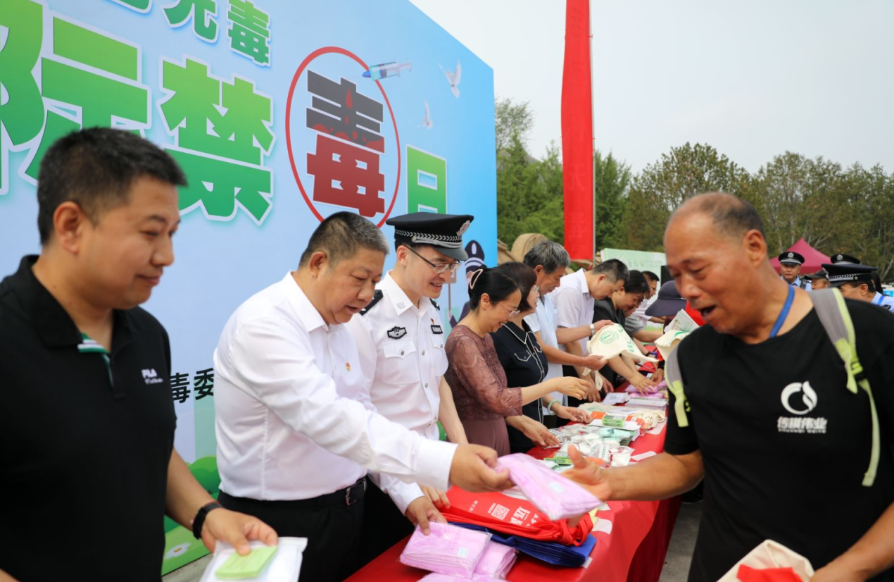 今天(6月26日)是第36个国际禁毒日。上午,昌平区以 “健康生活绿色无毒”为主题在亢山广场开展宣传活动。