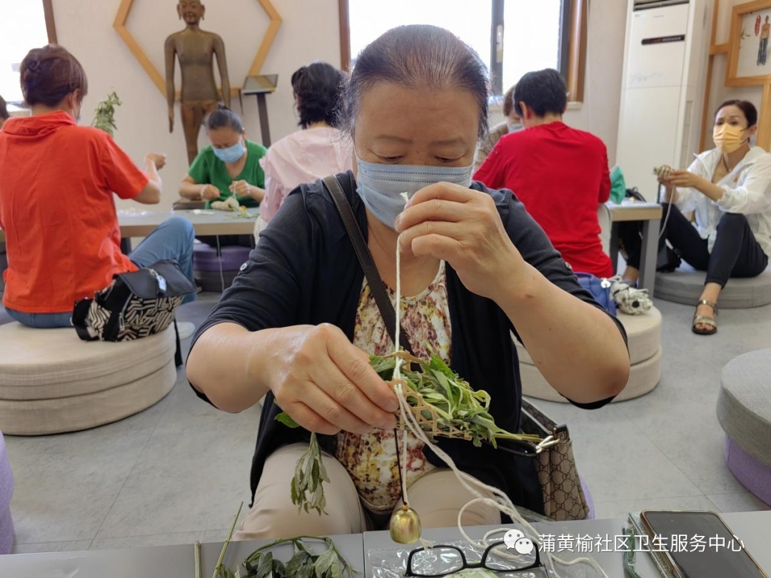 养生知识助力健康,小小香囊散发奇效,一缕艾叶联通古今,一套功法疏通气血,蒲黄榆社区卫生服务中心以传统节日为载体,依托百姓身边的中医药体验馆,让更多群众了解传统节日与传统医药的关系,增强社区居民对中医药文化的认识,提升自身中医药文化素养,实现运用中医智慧护佑百姓健康。