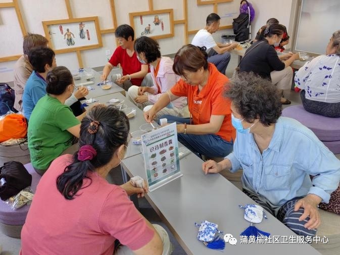 6月20日,在端午佳节即将来临之际,以“弘扬传统文化,传承中医智慧”为主题,蒲黄榆社区卫生服务中心为辖区居民准备了中医药健康文化沉浸式体验系列活动,邀请辖区30余名居民参与其中。活动以手工制作、互动问答、功法练习及问卷调查等形式开展,完成各项活动打卡并集齐“通关文牒”上的印章后,可获得精美礼品。