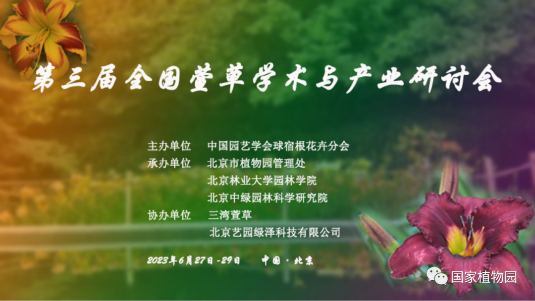 2023年6月28日,第三届全国萱草学术与产业研讨会——“中国的母亲花萱草的研究与产业发展”在国家植物园(北园)卧佛山庄内召开,会议由中国园艺学会球宿根花卉分会主办,国家植物园(北园)、北京林业大学园林学院、北京中绿园林科学研究院承办,三湾萱草、北京艺园绿泽科技有限公司协办。来自全国各地的高校科研院所、研究机构、生产单位的专家共50余人参加会议。