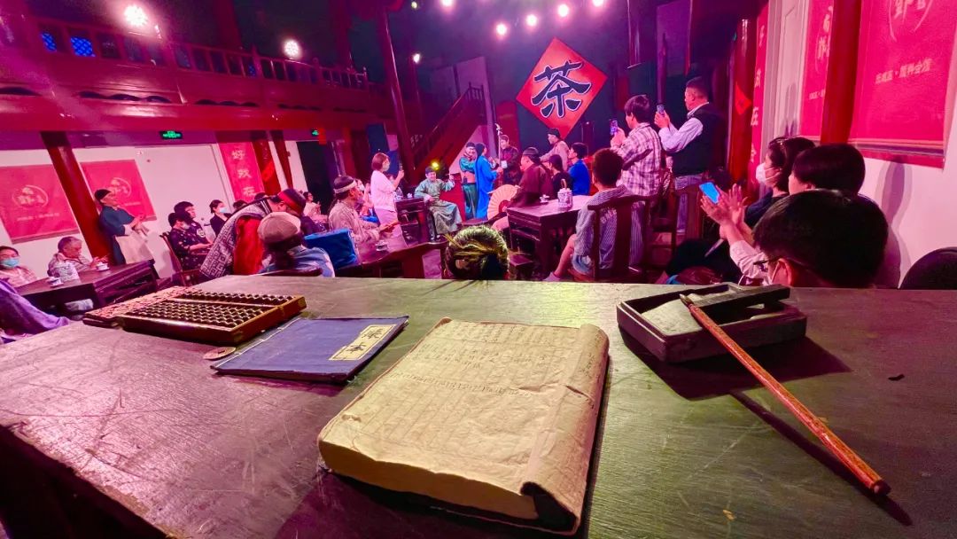 演出打破传统舞台表演形式,以“融戏于景、戏景相融”的全新形式呈现。观众以茶馆“顾客”的身份参与整场表演,与演员一同置身演出场景之中,极强的代入感、参与感、互动性,调动着观众的多重感官,带来融入剧情、投射情感的新型入口。