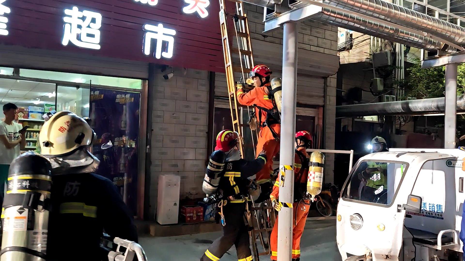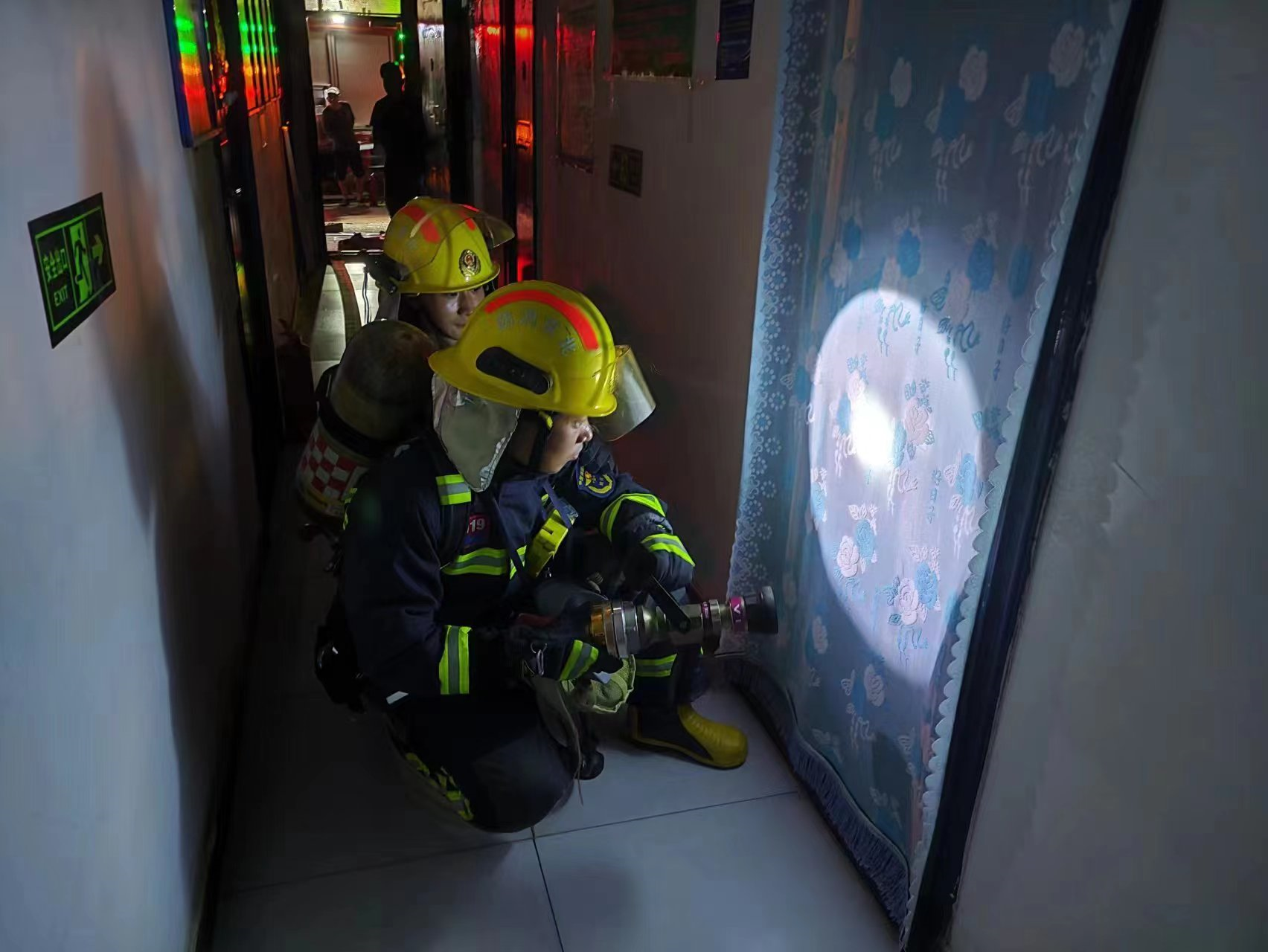 演练从“真训、实演、严考”的要求出发,模拟重点村远离主干道、夜间救援较困难的“最不利点”村民自建出租房着火,伴有大量浓烟,人员被困。接警后,辖区救援站迅速出动,同时联动村微型消防站就近处置。救援站到场后迅速成立灭火组、疏散组和破拆组,村微型消防站配合消防站清理消防车通道、疏散就近人员等。各参演单位分工明确、紧密配合,快速有序地完成了各项设定任务。