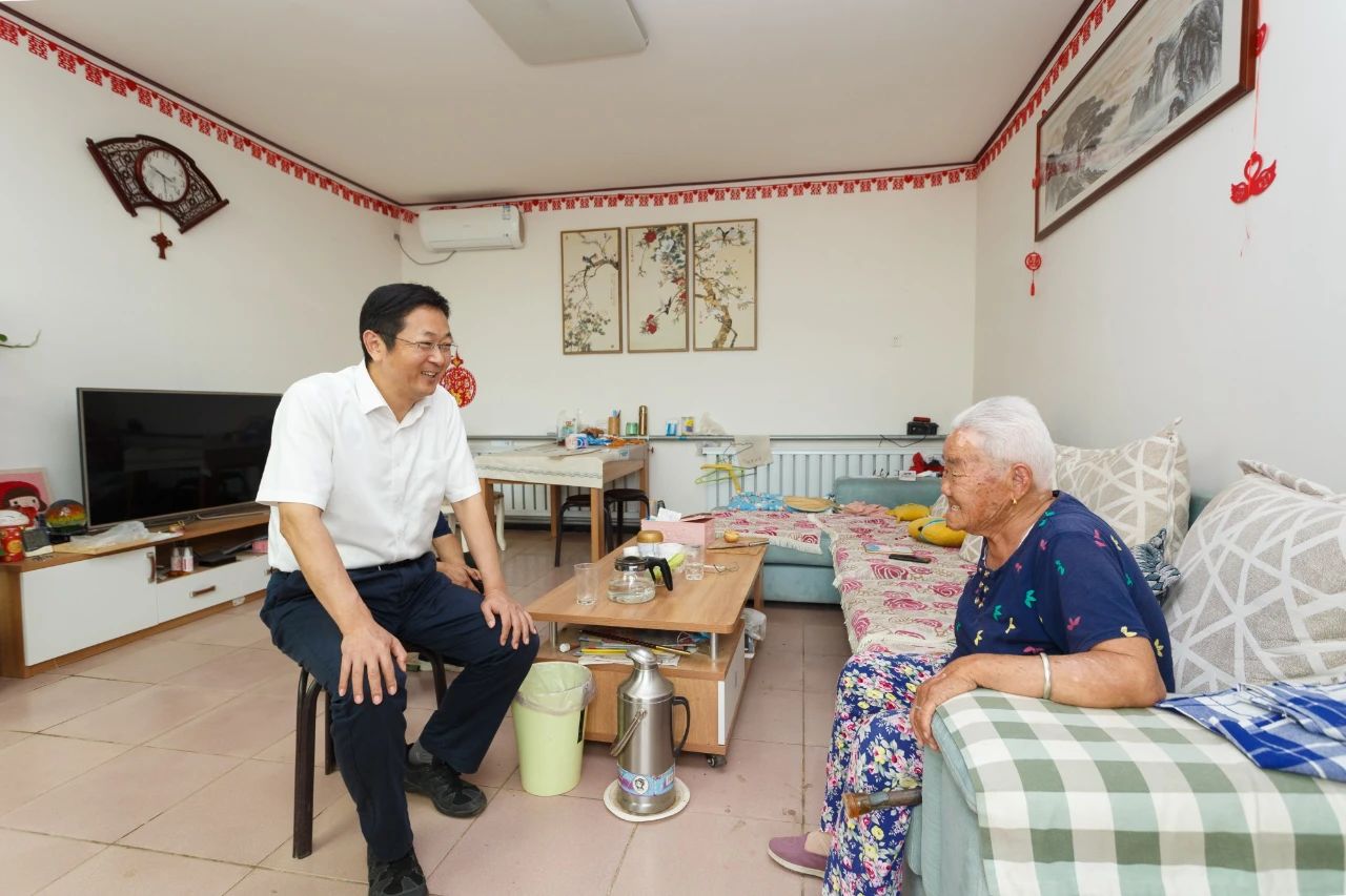 家住兴寿镇上西市村的贺连荣现年97岁,于1948年7月加入中国共产党。在贺连荣家门口,看见遛弯回来的老人,甘靖中走上前搀扶老人进入屋内。“您老的身体不错!”“和谁一起生活?”……甘靖中与贺连荣亲切攀谈,称赞她为党和国家、为昌平发展作出了奉献,并祝愿老人身体健康、家庭幸福。