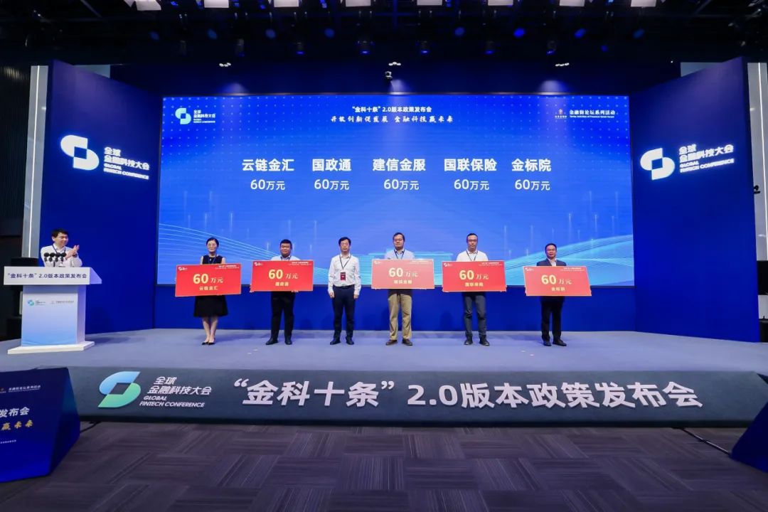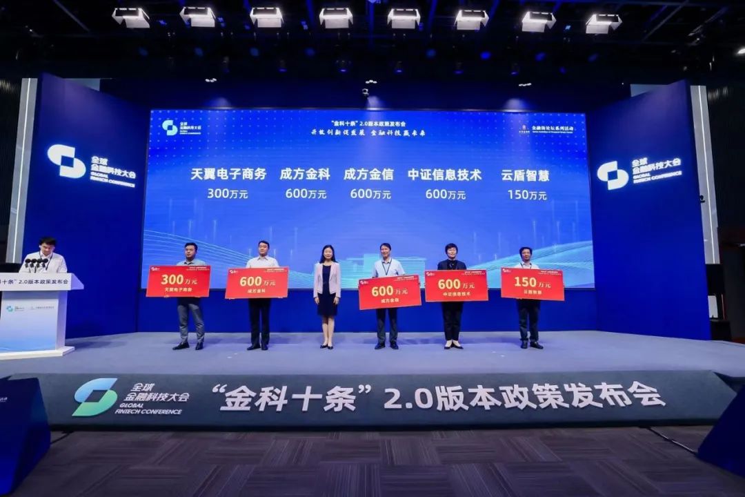 据了解,“金科十条”1.0版本政策实施以来,已兑现资金2.75亿元。发布会现场还为天翼电子商务、成方金科、中证信息技术等20家企业,颁发近期审议通过的政策资金补贴4000余万元,助力金融科技机构发展。