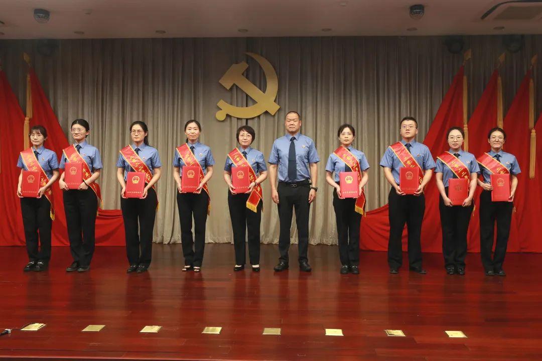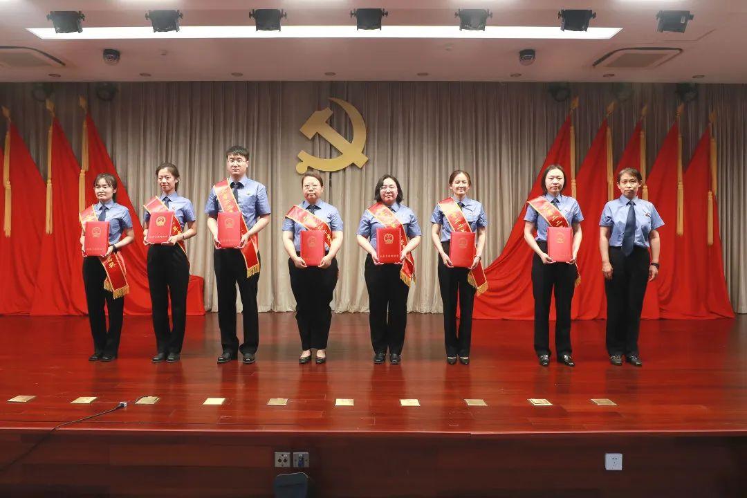 图为党组成员汪丽红为2022年度考核称职嘉奖干警代表颁发证书
