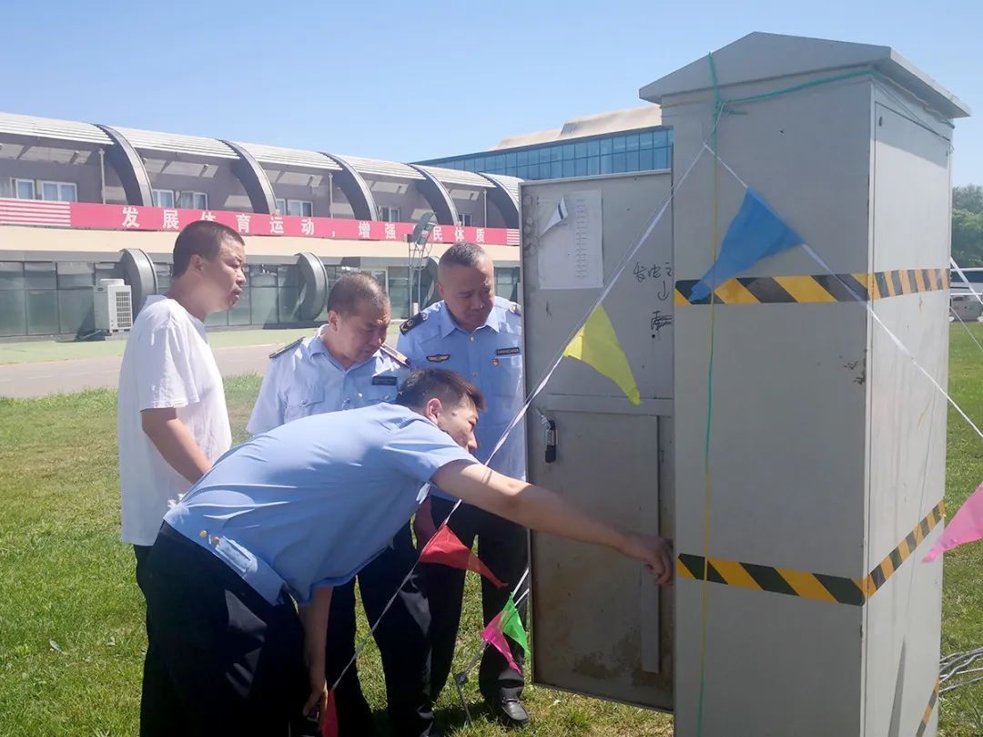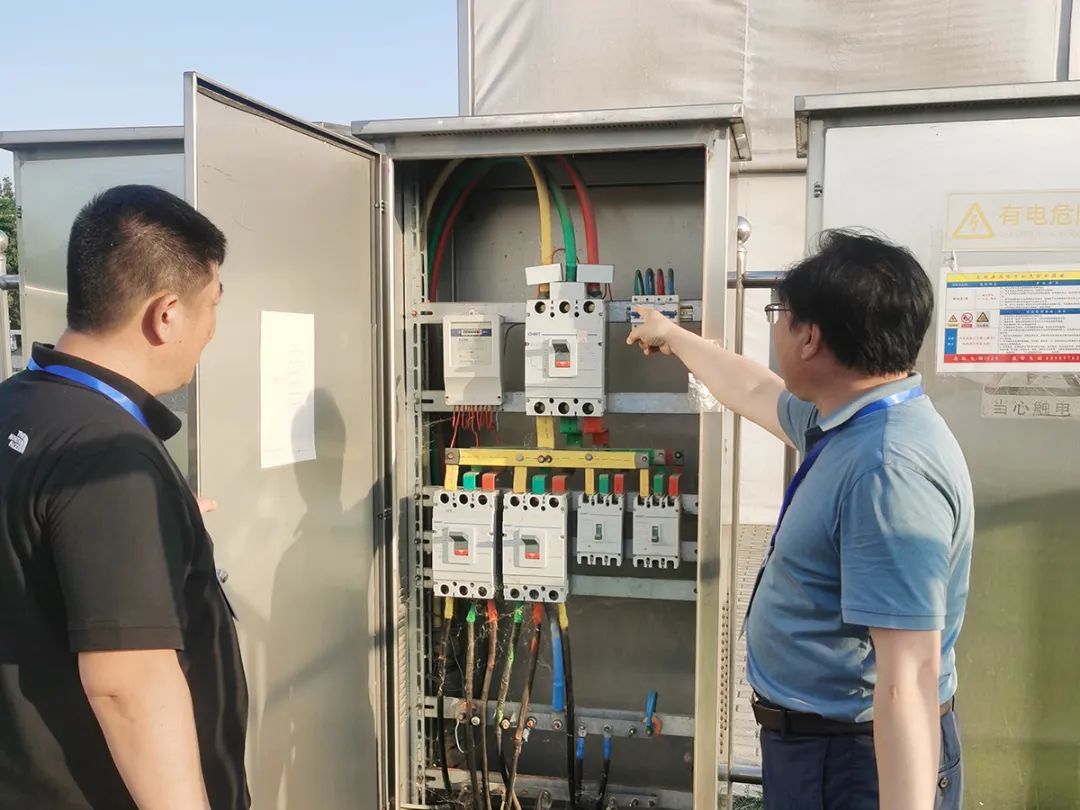 燕京啤酒集团安全应急保障组工作人员检查主会场配电设施。