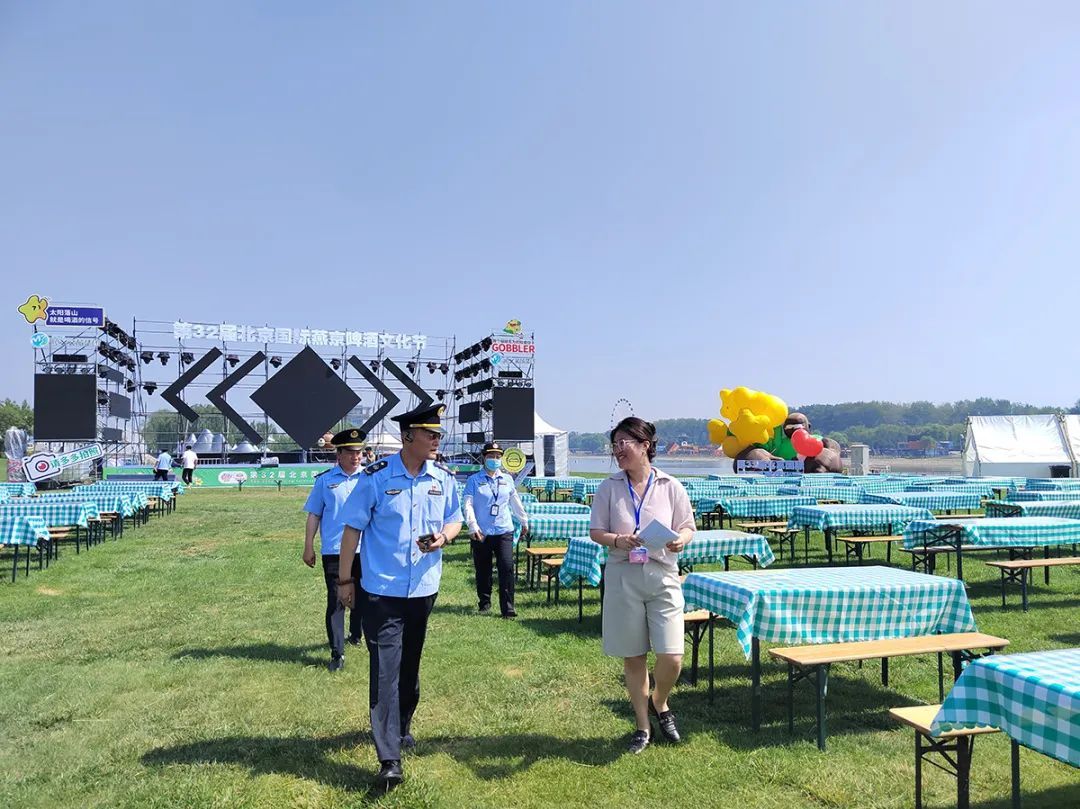 区文旅局围绕燕京啤酒文化节开展文化和旅游市场秩序综合治理,对活动现场导览标识、安全提示、现场演出以及易引起人员聚集的售票口、检票口等重点部位进行检查,确保游客进场安全、有序。
