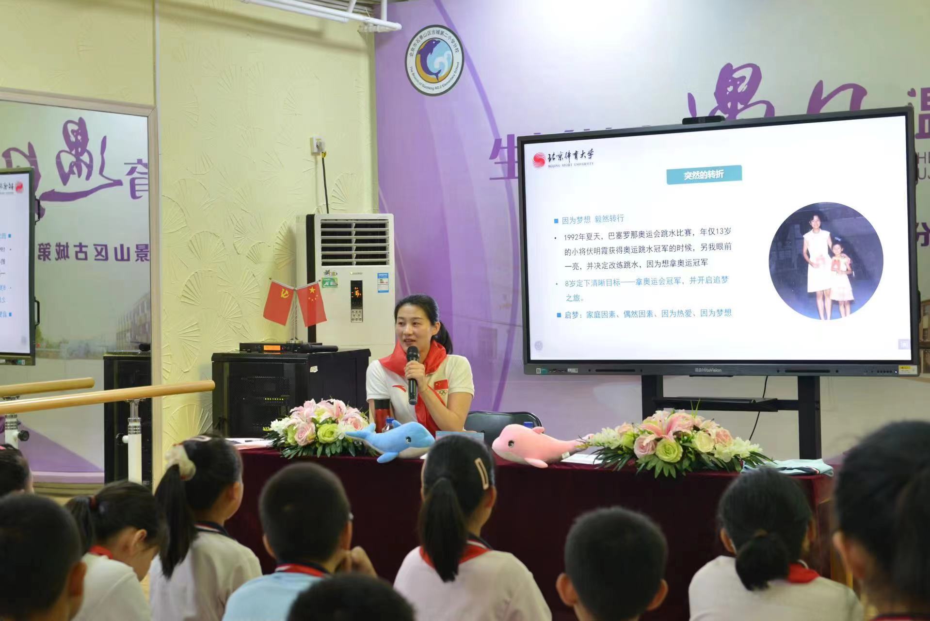 日前,古城第二小学分校的同学们沉浸在一片欢乐的氛围中,学校邀请到民盟体育发展委员会副主任、奥运会跳水冠军李娜走进校园,以《我的奥林匹克梦想》为主题,为同学们深情讲述了自己与跳水的一段不解之缘。