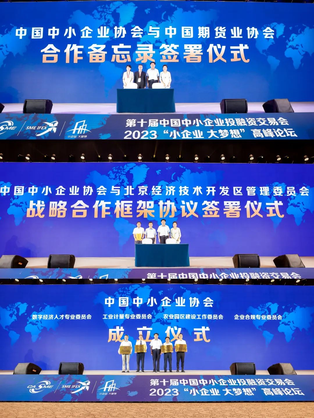 △中国中小企业协会分别与中国期货业协会和北京经开区管理委员会签署战略合作协议。