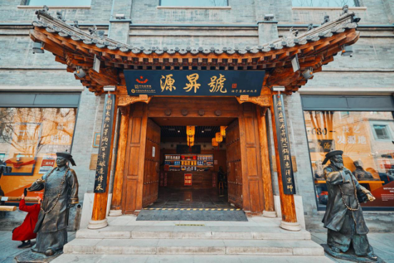 继续南行,可以看到前门大街103号的红星二锅头源升号博物馆,作为二锅头工艺的诞生地,源升号博物馆复原了明清时期前店后坊的布局,实景实貌完整展示了北京二锅头酒传统酿造技艺,沉浸式体验红星二锅头的前世今生,一窥百年前“酒品之多,京师为最”的京城酒业盛况。
