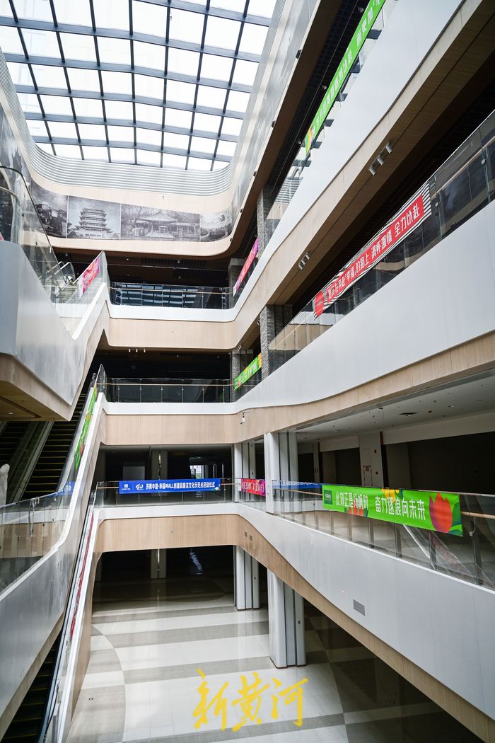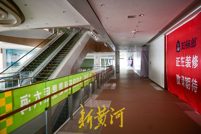 7月4日,在青岛路与齐州路东南角,一处建筑面积约6.2万平方米的商业综合体已经建成,商场内部地上共有5层,每一层都有商家搭建起围挡,开始进入商场内部进行店铺装修,商场外部也搭建起大型广告牌,展示将进入商业综合体内经营的品牌商家。