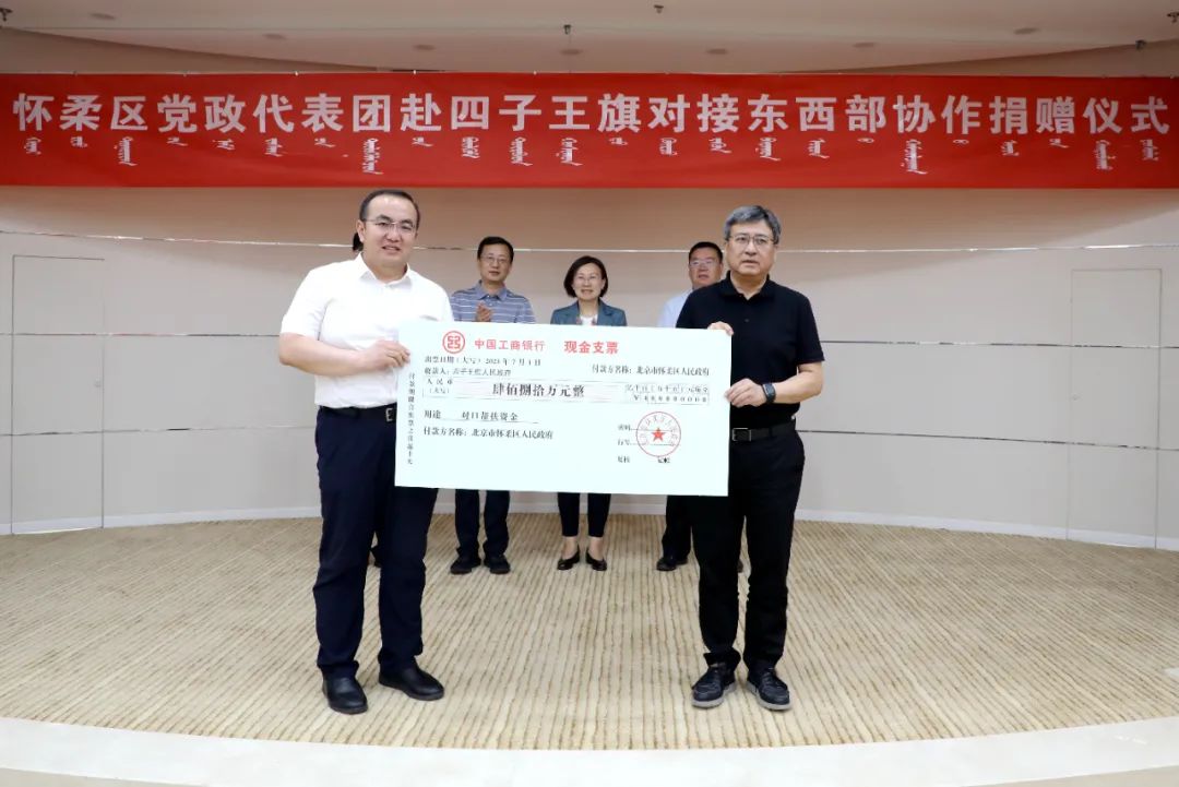 在怀柔区与四子王旗对接东西部协作工作座谈会上,四子王旗介绍了2023年京蒙协作工作开展情况,并举行捐赠仪式。