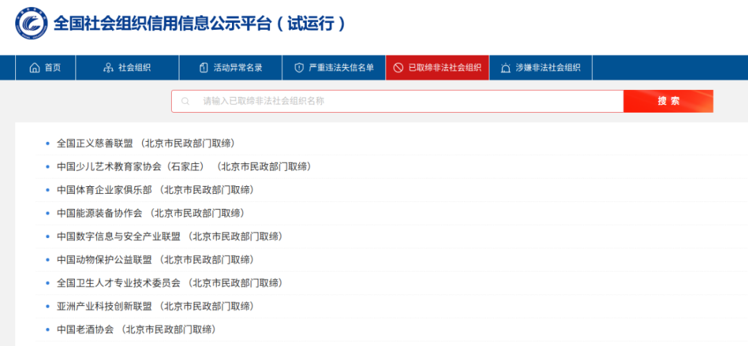 已取缔非法社会组织、涉嫌非法社会组织名单