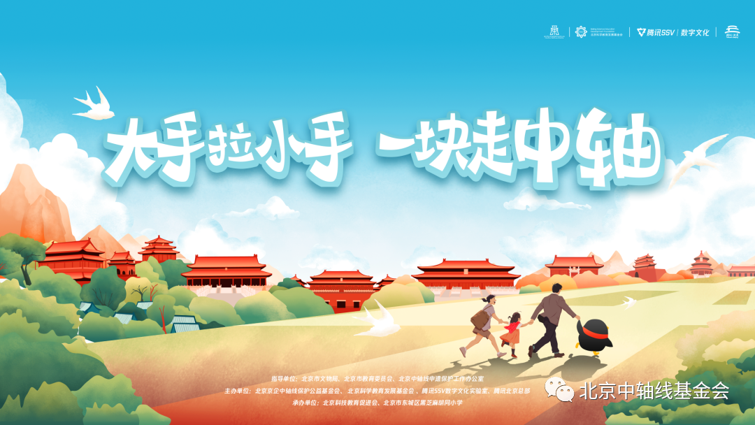 此次活动由腾讯SSV数字文化实验室联合北京京企中轴线保护公益基金会、北京科学教育发展基金会、腾讯北京、腾讯公益基金会共同发起。活动从2023年7月3日持续到2023年9月9日。同学们可通过登录“云上中轴”小程序进入到段落景观、中轴历史等模块,了解北京中轴线历史沿革、文化内涵,线上学习知识。