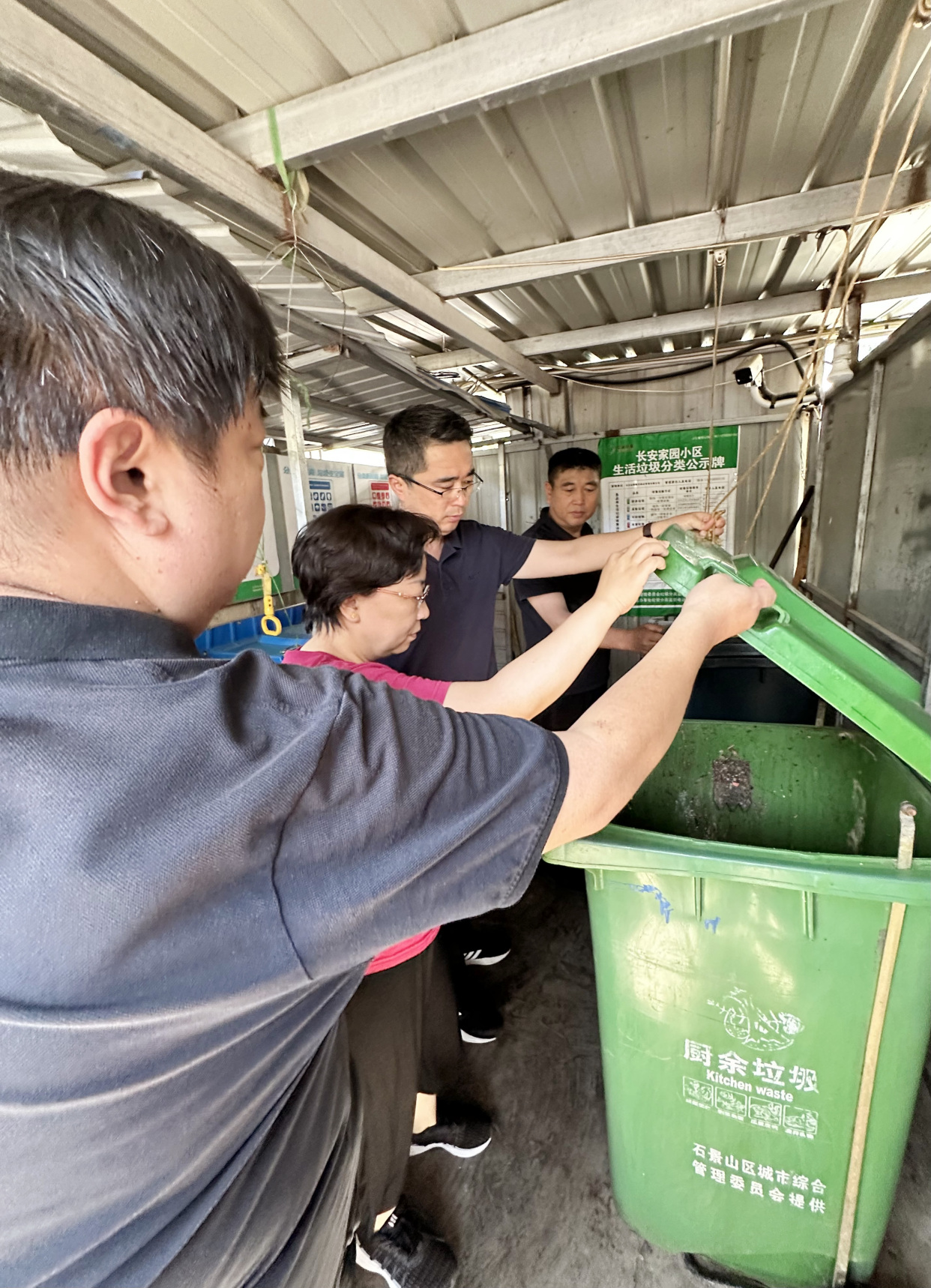 检查专班先后来到古城南里社区长安家园小区、八角中里社区、建钢南里社区北锅小区西院、北方工业大学、中储粮油脂营销有限公司、天外天烤鸭店等,仔细查看了垃圾桶站是否整洁合规、垃圾分类是否正确,对于发现的问题要求立即进行整改。