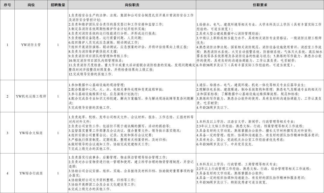 河北雄安人力资源服务有限公司(以下简称雄安人力公司)根据工作需要,现面向社会公开招聘消防主管、机电运维工程师、综合文秘、综合行政岗位项目员工。工作地点在雄安新区。