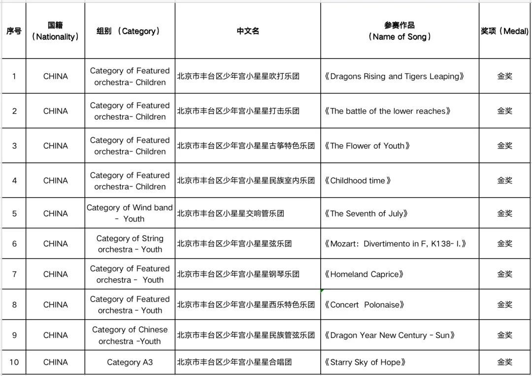 丰台区少年宫“小星星”艺术团在“2023勃拉姆斯国际乐团比赛” 和“勃拉姆斯国际冬季合唱节”中斩获10个金奖。