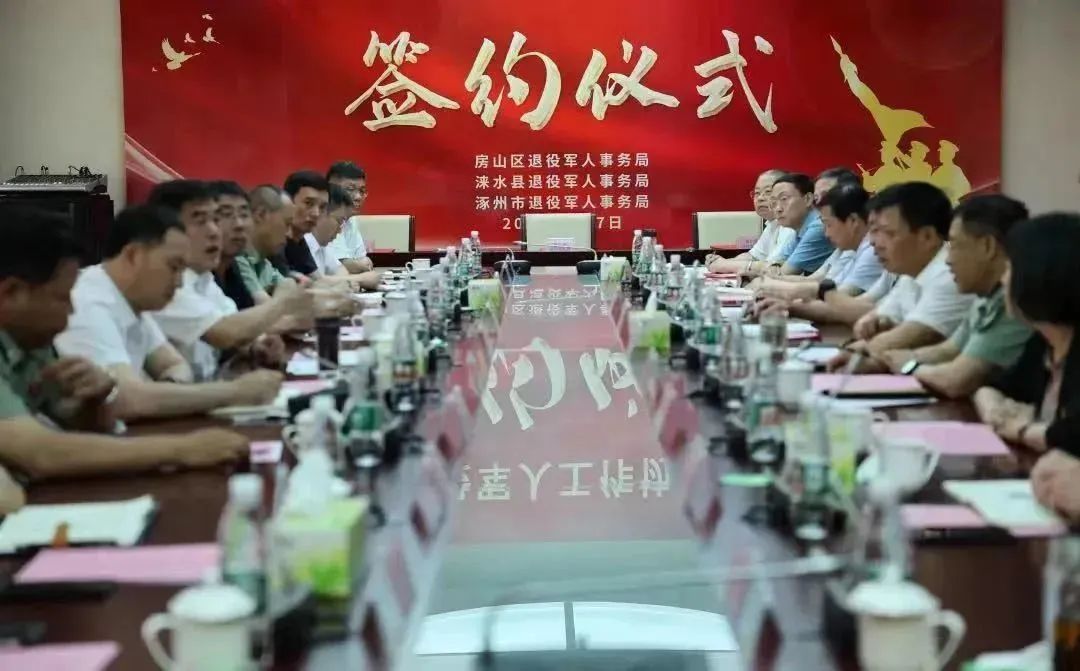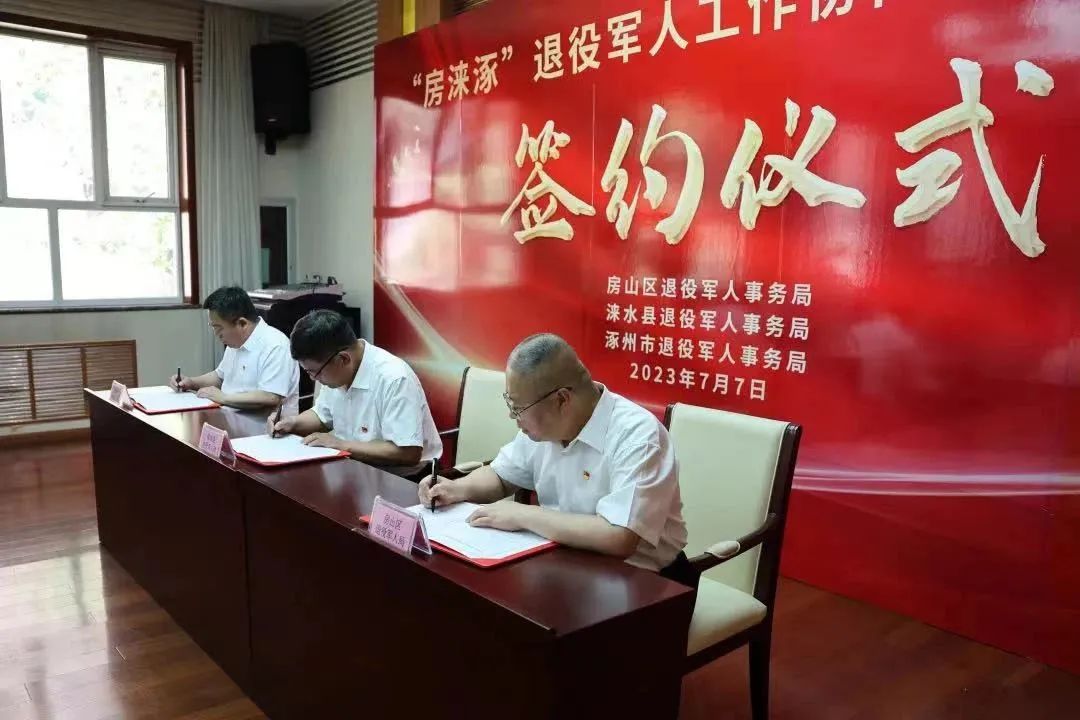 房山区退役军人事务局、涞水县退役军人事务局、涿州市退役军人事务局,共同签订了“房涞涿”退役军人工作协同发展一体化框架协议。