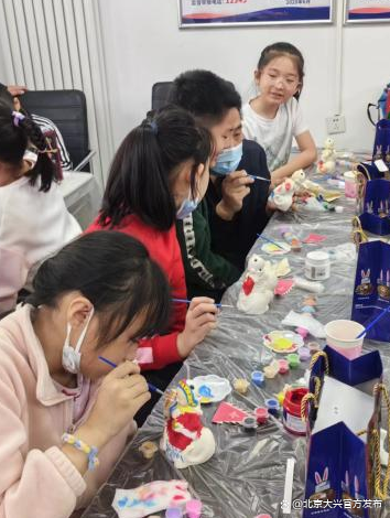 活动中,老师首先为家长孩子介绍了“兔儿爷”的来历、寓言故事和民间传说,随后从颜色选取、绘制步骤、组装方法等方面手把手教大家进行描绘。大家拿起画笔,一步一步为兔爷儿模具着色,将“兔儿爷”描绘得栩栩如生。