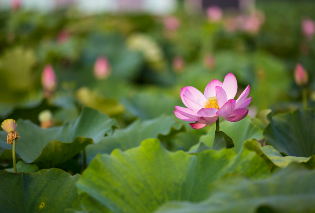 白云湖风光天成,四时常新,为夏最盛。万亩荷塘,莲叶田田,中有红莲万朵,姿态各异,亭亭玉立,宛若群仙。游玩于白云湖,宛若来到了以“荷”为题的飞花令,东边“接天莲叶无穷碧,映日荷花别样红”,西边“荷叶五寸荷花娇,贴波不碍画船摇”,往前走“惟有绿荷红菡萏,卷舒开合任天真”,回首望“有意十分开晓露,无情一饷敛斜阳。”