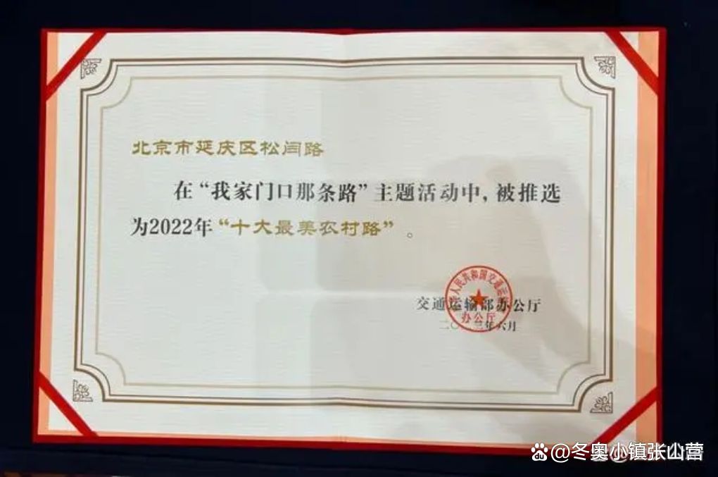 6月20日,在河北邢台,交通运输部主办了2023年“我家门口那条路”主题宣传活动,对2022年入选的“十大最美农村路”进行了颁奖,位于张山营镇的松闫路凭借两侧秀丽景观和在冬奥服务保障中发挥的重大作用,成为北京市唯一一条获此殊荣的农村道路。