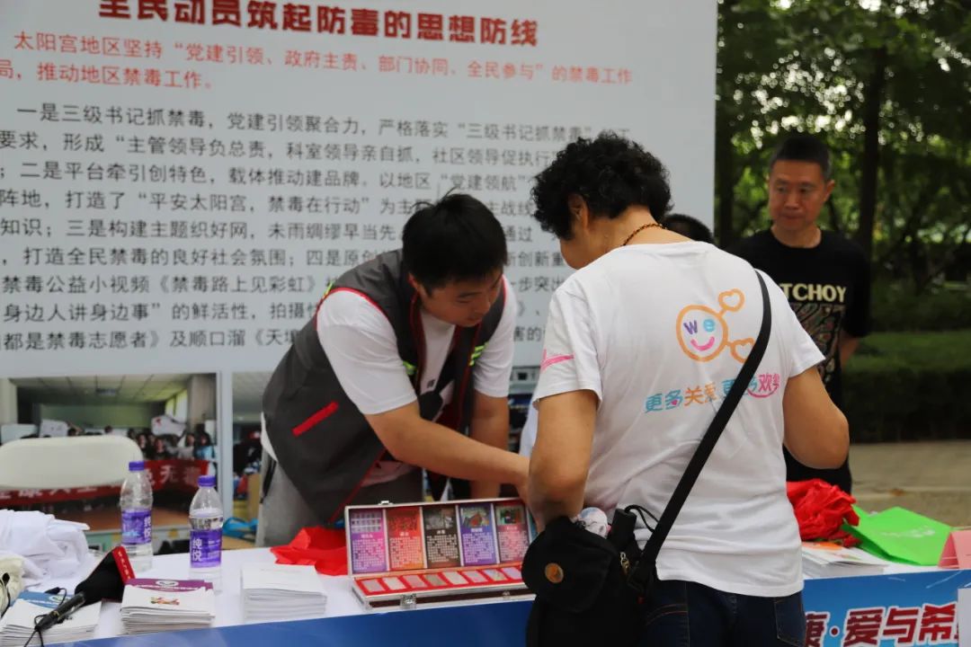 6月26日,朝阳区禁毒委主办的“阳光·健康·爱与希望”国际禁毒日主题活动在朝阳公园举行。活动当天,在太阳宫乡禁毒宣传展位前,驻足了许多居民。工作人员一边为大家发放禁毒宣传册和小礼品,一边耐心地向居民普及毒品的类型、特点、预防毒品的办法以及禁毒相关的法律法规,让大家深刻认识到毒品的危害,同时呼吁大家积极参与禁毒工作,向自己身边亲戚朋友宣传禁毒知识,让全民禁毒的理念更加深入人心。